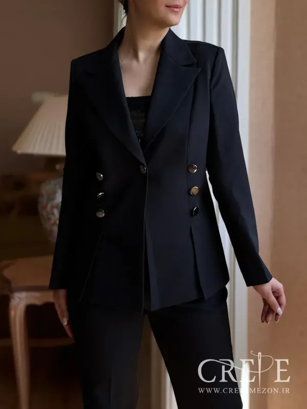 کت کرپ جلو چاک هفت دکمه یک کت تک مجلسی که قابلیت استایل با تمام شلوار ها را داشته و باعث اعتبار استایل شما می شود. همچنین برای ایست بهتر دارای آستر می باشد.