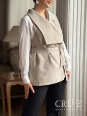 طرح پارچه به صورت راه راه انتزاعی، به این وست جلوهای مدرن و هنری میبخشد و میتواند به راحتی با سایر لباسها و اکسسوریها ترکیب شود. طراحی فری سایز این وست زیبا با یقه آرشال امکان پوشیدن آن توسط افراد با سایزهای مختلف را فراهم میآورد و به راحتی با فرم بدن سازگار میشود. به طور کلی، این وست مجلسی یک انتخاب عالی برای افرادی است که به دنبال ظاهری شیک و منحصر به فرد برای مجالس و مهمانیها هستند.