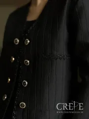 کت کراپ دو جیب در رنگ مشکی موجود است که رنگی کلاسیک و همواره مد است. رنگ مشکی به خوبی با سایر رنگها ترکیب میشود و میتواند در موقعیتهای مختلف مورد استفاده قرار گیرد. دارای دو جیب کاربردی در قسمت جلو است که علاوه بر زیبایی، امکان نگهداری اشیاء کوچک مانند کلید یا گوشی همراه را فراهم میکند. این کت دارای دو ردیف دکمه طلایی است که بیشتر جنبه تزیینی دارند و کاربردی نیستند. این دکمهها به طراحی کت جلوه خاصی میبخشند و به آن زیبایی بیشتری میدهند.