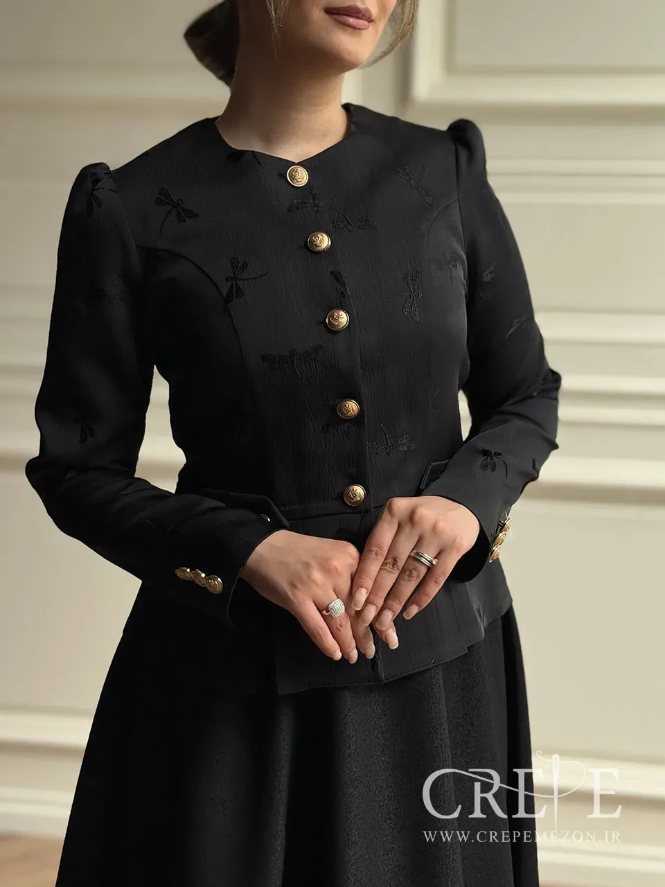 کت ژاکارد سنجاقک جانا یک کت مجلسی زیبا که با پارچه مرغوب و طراحی کلاسیکی که دارد باعث اعتبار استایل می شود. این کت زیبا در رنگ مشکی و سایزبندی 46-38 موجود است.