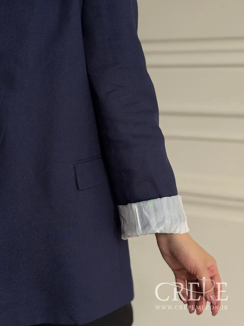 آستینهای پاکتی این مانتو کتی که می توان به صورت ساده تبدیل کرد علاوه بر پوشش کامل بازوها، به ظاهری رسمیتر و جدیتر میدهد. این طراحی باعث میشود که مانتو کتی را بتوان در محیطهای کاری یا رسمی نیز مورد استفاده قرار داد. طراحی جلو باز این مانتو کتی آن را ساده و در عین حال زیبا میکند. این ویژگی باعث میشود که به راحتی باز و بسته شود و همچنین گزینهای عالی برای زمانی است که قصد پوشیدن آیتم دیگری را زیر کت داشته باشید. دو جیب این مانتو کتی تابستانی علاوه بر کاربردی بودن جنبه زیبایی نیز دارد و میتواند به عنوان یک عنصر تزئینی نیز در نظر گرفته شود. وجود آستر در دو طرف جلویی کت، به راحتی پوشیدن و درآوردن مانتو کمک میکند و همچنین به بهبود ظاهر و کیفیت ساخت آن میافزاید.