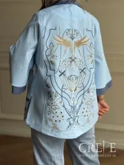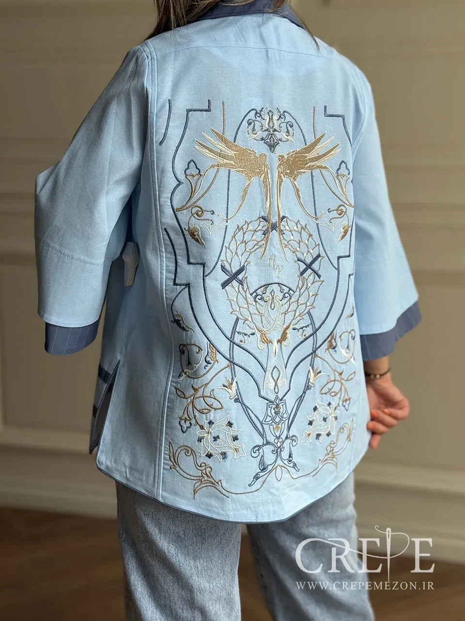 مانتو لینن گلدوزی یک مانتو مجلسی زیبا و فاخر که از جنس پارچه لینن بوده و از کیفیت و ظرافت بالایی برخوردار است. سایزبندی آن فری و رنگبندی آبی روشن می باشد.