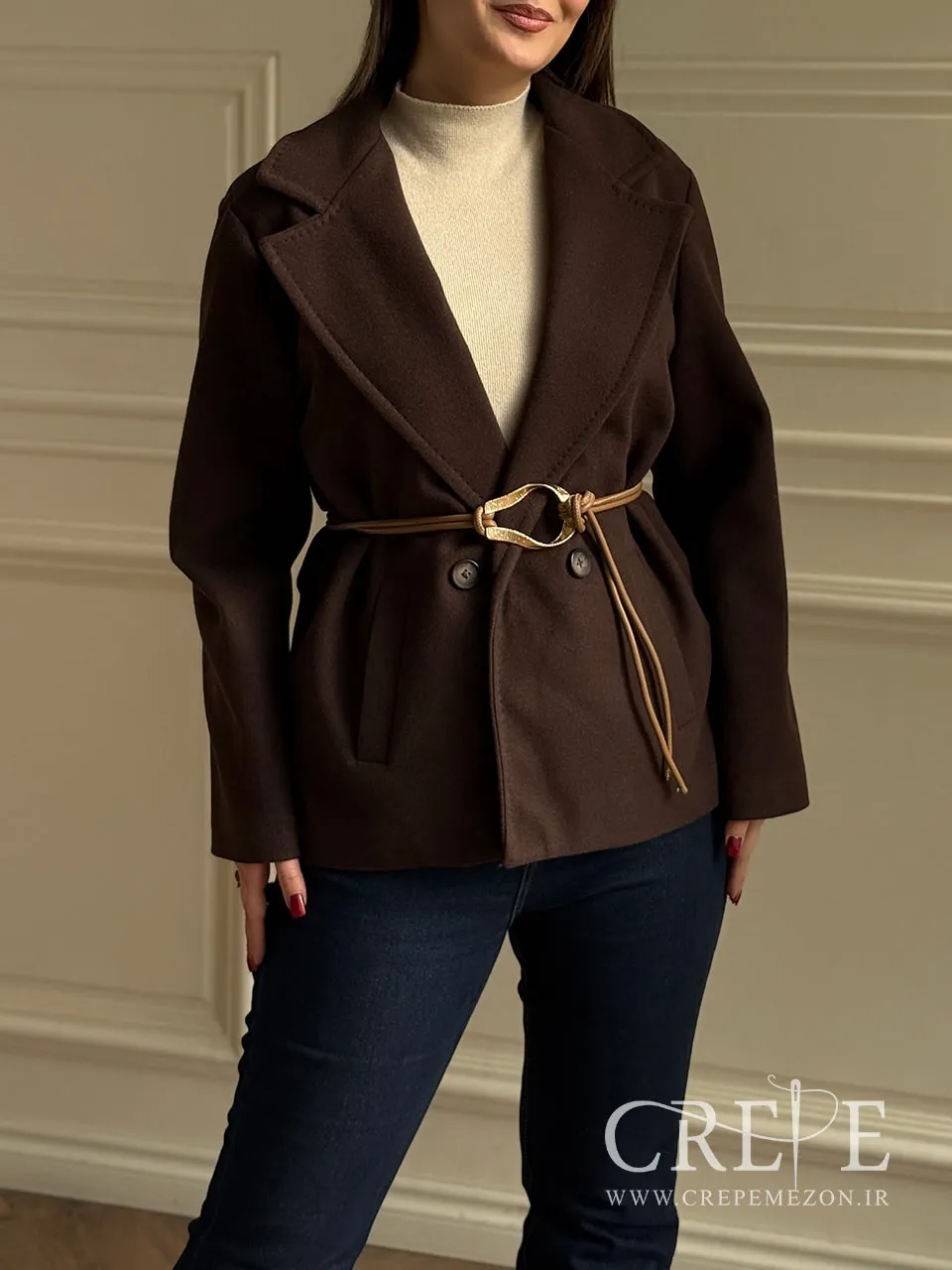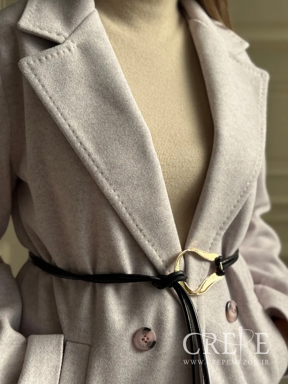 این آستر همچنین به نرمی و لطافت کت میافزاید. طراحی جلو باز این پالتو به شما این امکان را میدهد که به راحتی آن را بر روی لباسهای دیگر بپوشید و ظاهری مدرن و شیک داشته باشید. این پالتو دارای کمربند بند دار با یراق طلایی است که به زیبایی و جذابیت بیشتر آن میافزاید. این کمربند به شما این امکان را میدهد که کت را به دلخواه خود تنظیم کرده و فرم بدن را به خوبی نمایان کنید. این پالتو دارای دو جیب کاربردی است که به شما امکان میدهد وسایل کوچک خود را به راحتی در دسترس داشته باشید و از آنها استفاده کنید.
