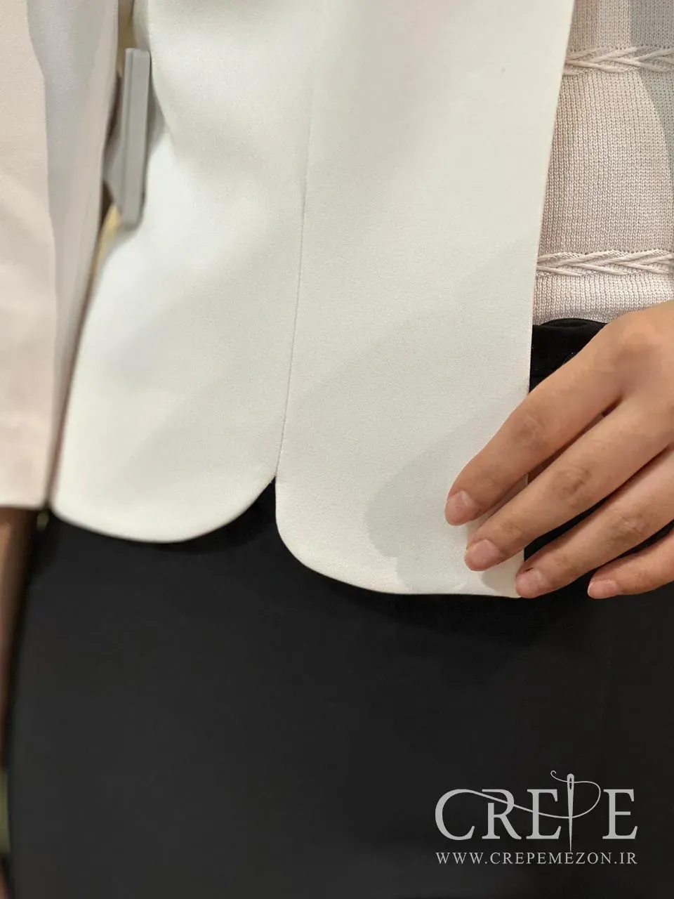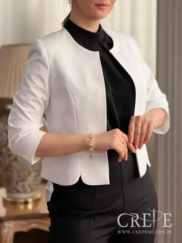 کت کرپ کوتاه دالبری یک کت کراپ کاربردی که هم با انواع شلوار و دامن ست می شود و هم قابلیت این را دارد تا روی پیراهن های ماکسی به عنوان حجاب استفاده شود.