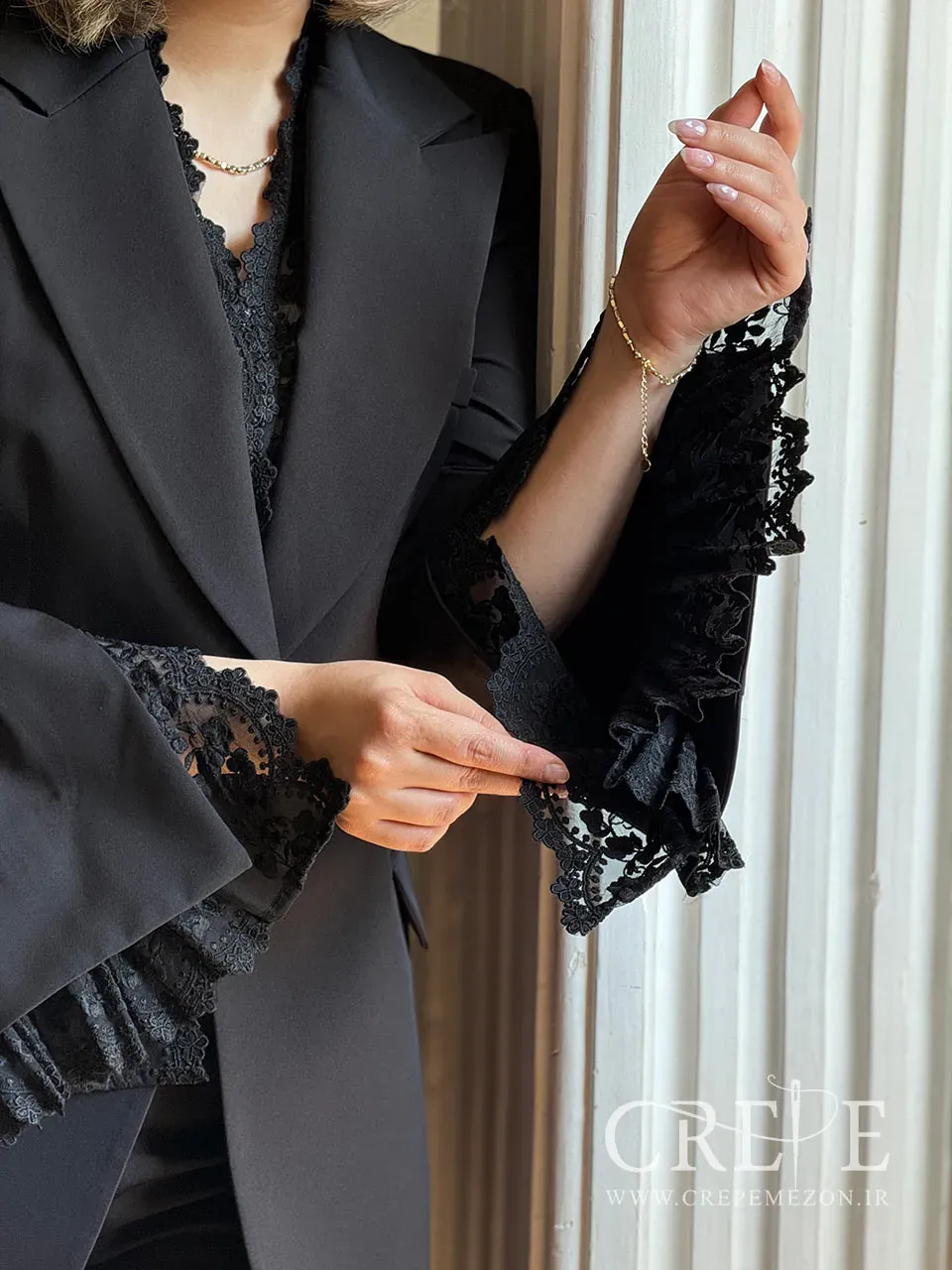 کت کرپ گیپور دار یک مانتو مجلسی زیبا که برای مجالس و مهمانیها طراحی شده است. این مانتو از جنس کرپ با کیفیت ساخته شده که به دلیل تنفس پذیری و لطافت، راحتی را برای شما به ارمغان میآورد. این مانتو مجلسی از جنس کرپ است که به خاطر نرمی و ایستایی خوبی که دارد، در دوخت مانتوهای مجلسی بسیار محبوب است. لایه داخلی آن با آستر رویال دوخته شده که به مانتو جلوهای لوکس و کیفیتی بالا میبخشد. موجود در رنگهای سفید و مشکی که هر دو گزینهای کلاسیک و زیبا برای مناسبتهای مختلف هستند. آستینها به صورت چاکدار طراحی شدهاند.