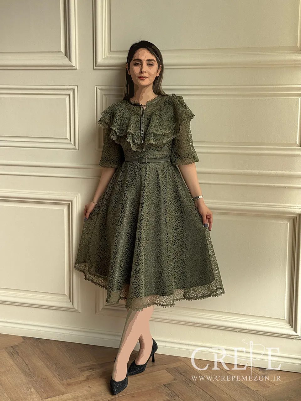 پیراهن تمام دانتل کمربنددار