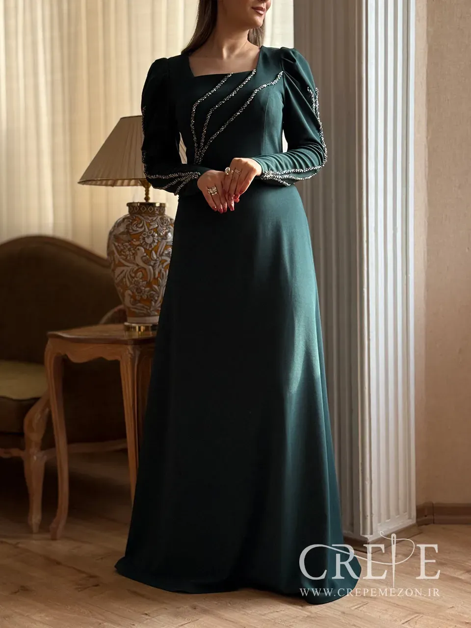 ماکسی بالاتنه سنگ دوزی یک پیراهن مجلسی با طراحی پوشیده و شیک، انتخابی مناسب برای مجالس و مهمانیهای رسمی است. جنس این پیراهن از کرپ دالقیچ است که با بافت نرم و لطیف خود، احساس راحتی و زیبایی را به همراه دارد. طراحی پفی سرشانهها به پیراهن حجم و زیبایی خاصی میبخشد و خطوط گردن و شانه را به خوبی نمایان میکند. آستینهای بلند و ساده، به این پیراهن جلوهای کلاسیک و زیبا میدهد و به پوشیده بودن آن کمک میکند. برشهای اندامی در قسمت بالاتنه، فرم بدن را به خوبی نمایان میسازد و باعث میشود که این بخش از پیراهن به زیبایی تن را در بر بگیرد.