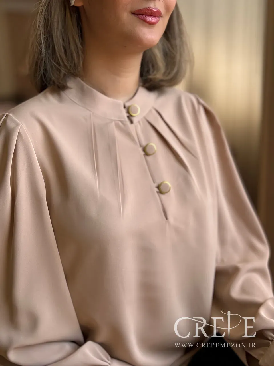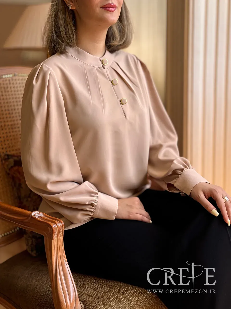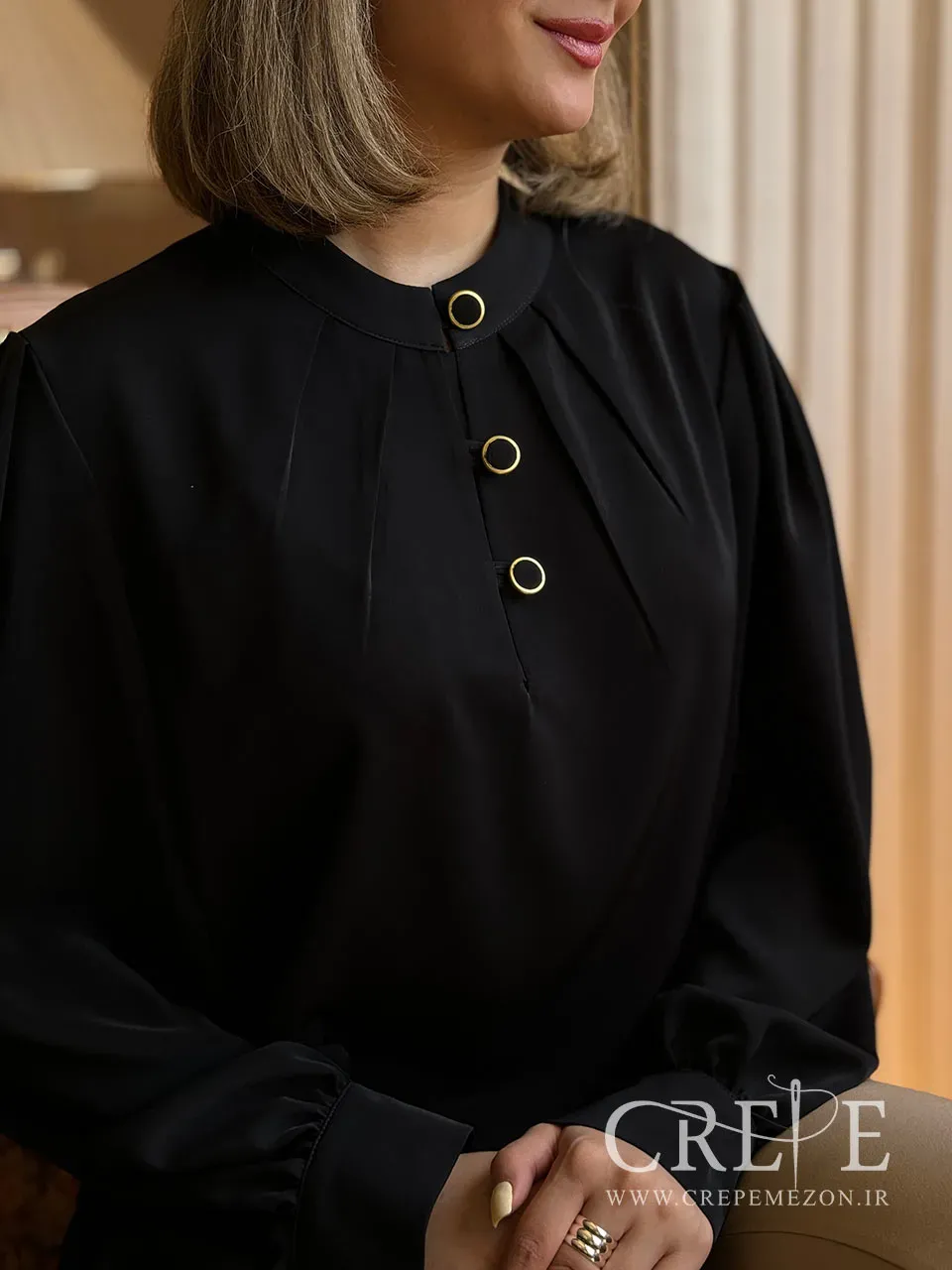 شومیز یقه پیله دار یک شومیز پوشیده و در عین حال شیک و مجلسی از جنس کرپ الیزه می باشد که در رنگبندی سرمه ای، مشکی، سدری، و کرم سایزبندی 38 تا 46 موجود است.