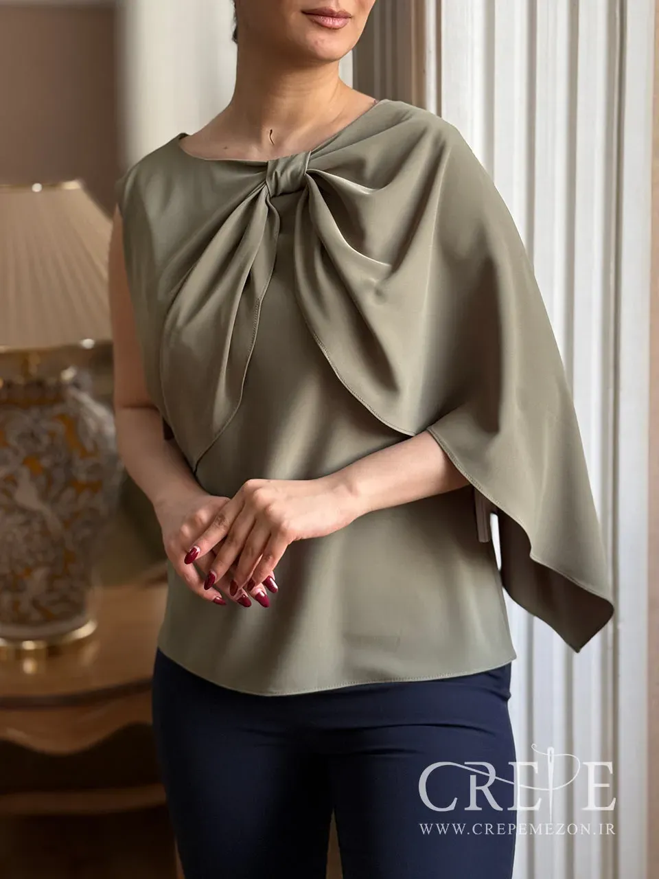 تاپ الیزه یقه پاپیونی یک تاپ مجلسی متفاوت که شما را به محض پوشیدن متمایز از دیگران خواهد کرد. جنس پارچه کرپ الیزه بوده و در رنگ های کاربردی موجود شده است.