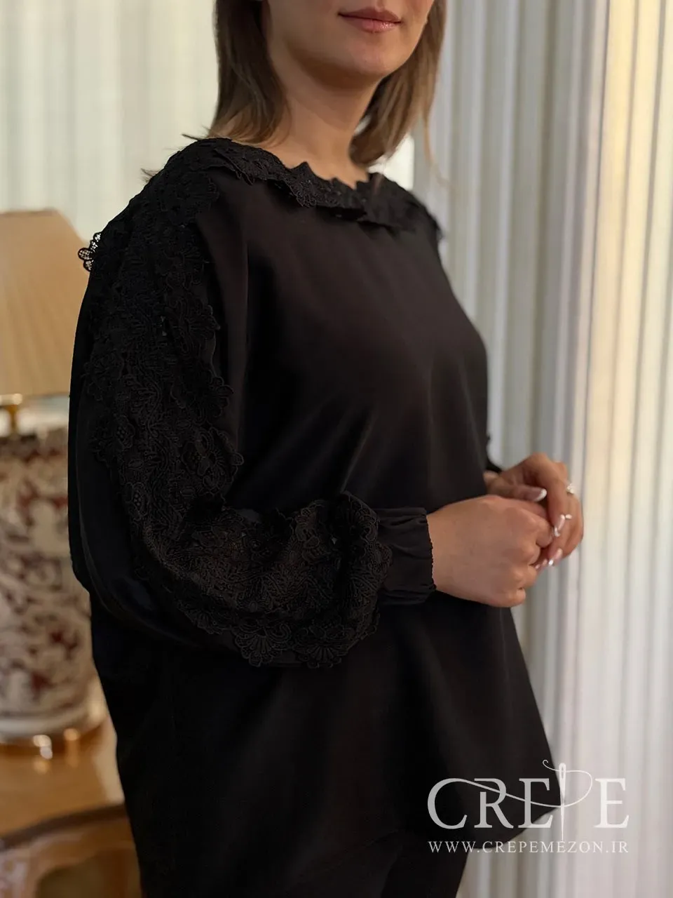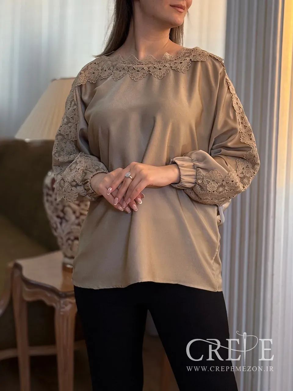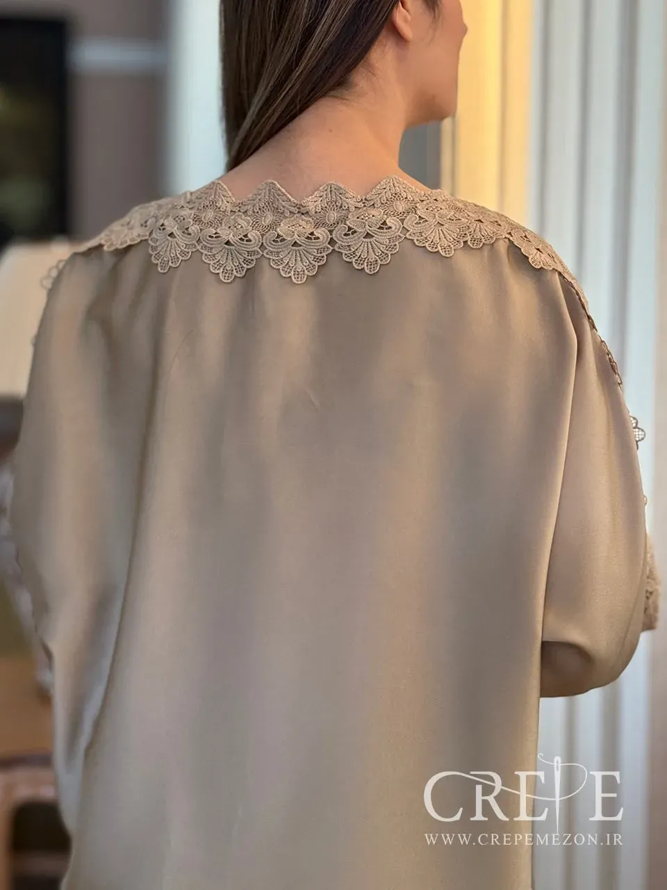 شومیز ساتن آستین کیمونو نوار گیپوری