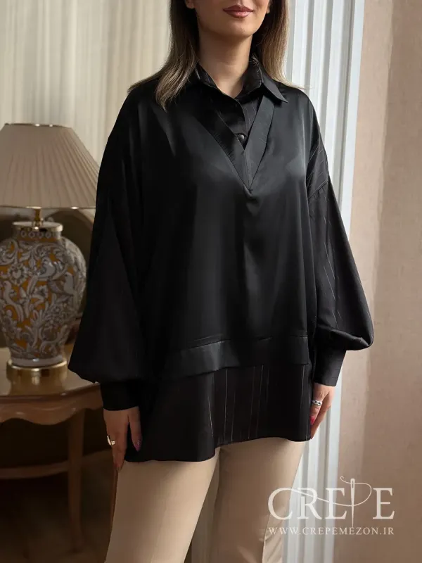 شومیز ترکیبی زری دار یک شومیز مجلسی زیبا که از جنس ساتن بوده و لطافت و برق زیبایی دارد. این شومیز زیبا به دلیل قد بلندی که دارد با انواع شلوار ست می شود.