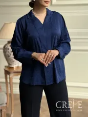 شومیز کراپ گلدار یک شومیز مجلسی زیبا که از جنس کرپ الیزه بوده و در سایزبندی 44-38 و دو رنگ کاربردی کرم و سرمه ای موجود است. آستینها در قسمت مچ کش دوزی دارد.