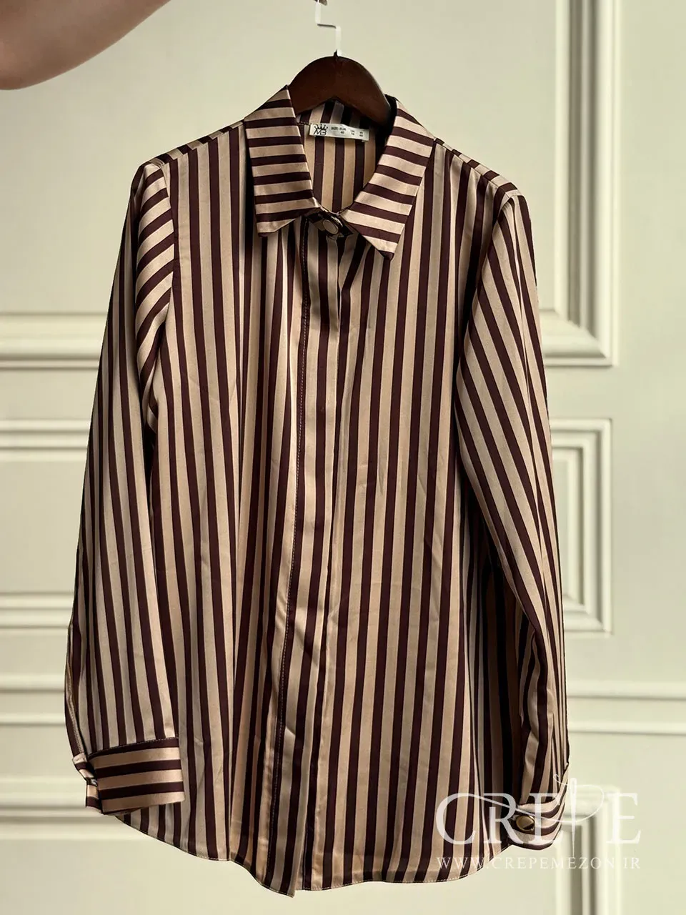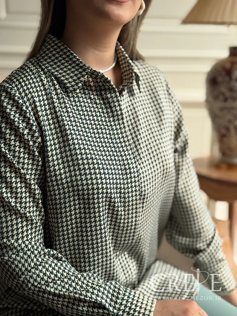 شومیز دکمه مخفی یقه مردانه یک شومیز پوشیده زیبا که از جنس کرپ الیزه بوده و با قاپک مخفی ایست جذابی در تن دارد. این شومیز زیبا در سایزبندی 46-40 موجود است.