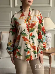 شومیز یقه فرنچ گلدار یک شومیز مجلسی و شیک که برای فصل بهار طراحی شده است. این شومیز با طرح گلدار جذاب و رنگهای زنده، ظاهر بهاری و دلنشینی دارد که به استایل شما طراوت و جذابیت میبخشد. دارای طرح گلدار متنوع و چشمنواز که مناسب استایلهای بهاری و جشنها می باشد. همچنین یقه به صورت فرنچ طراحی شده است که یک یقه کوچک و ایستاده بوده و ظاهری شیک و مدرن به لباس میدهد. آستین ها بلند و مچی است که به آن ظاهری کلاسیک و در عین حال راحت میبخشد. در قسمت جلو با دکمههایی که تا قسمت پایین ادامه دارند، طراحی شده که این به استفاده آسان آن کمک می کند.