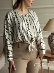 برای استایل کردن تاپ مجلسی جلو دکمه که از جنس کرپ الیزه است، می توانید از شلوار های جین تیره یا شلوار پارچهای رنگی استفاده کنید. اگر استایل های کژوال و راحت در نظر دارید می توانید آن را با کفشهای کتانی یا کفشهای پاشنهدار ظریف ست کنید. اکسسوریهای ساده مانند یک گردنبند نازک یا گوشوارههای کوچک به استایل شما ظرافت میبخشد. همچنین میتوانید مانتو یا ژاکت کوتاه به عنوان لایه بیرونی روی تاپ دکمه دار اضافه کنید تا علاوه بر گرما، استایل شیک و لایه لایه ای هدیه دهد.