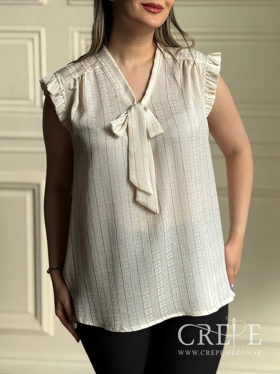 تاپ کریشه سرشانه چین یک تاپ مجلسی زیبا که از جنس کریشه لمه بوده و از ظرافت و ریزش بالایی برخوردار است. این تاپ زیبا در سایزبندی 44-38 و رنگبندی موجود است.