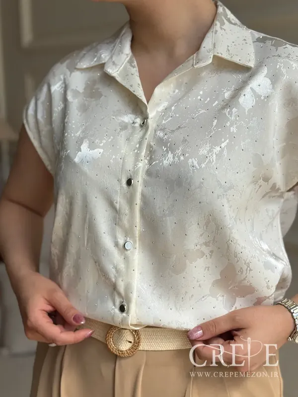 تاپ نگینی طرح پروانه یک لباس مجلسی زیبا و شیک است که طراحی خاص و جذابی دارد. این تاپ به صورت یقه مردانه طراحی شده است، که ظاهری متفاوت و منحصر به فرد نسبت به تاپهای معمولی دارد. قسمت جلوی تاپ با دکمه بسته میشود، که امکان تنظیم راحت و ظاهری آراسته را فراهم میکند. از پارچه ساتن طرحدار با نگینی های ریز و طرح پروانه دوخته شده است، که به آن درخشندگی و ظاهری لوکس میبخشد. این پارچه باعث میشود لباس در حین حرکت برق بزند و ظاهر مجلسی داشته باشد. همچنین جلو دکمه است، که جلوهای رسمی و شیک به لباس میدهد و امکان بسته یا باز نگه داشتن آن را فراهم میکند.