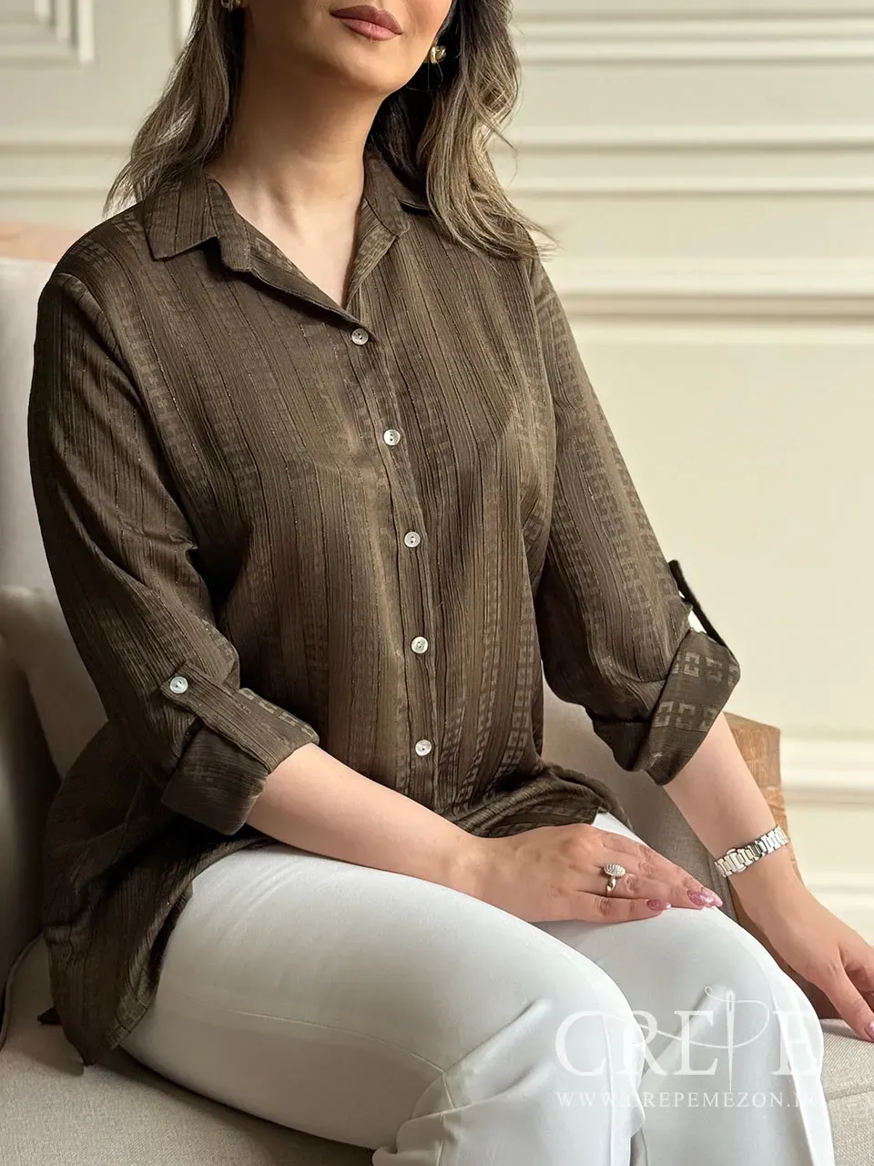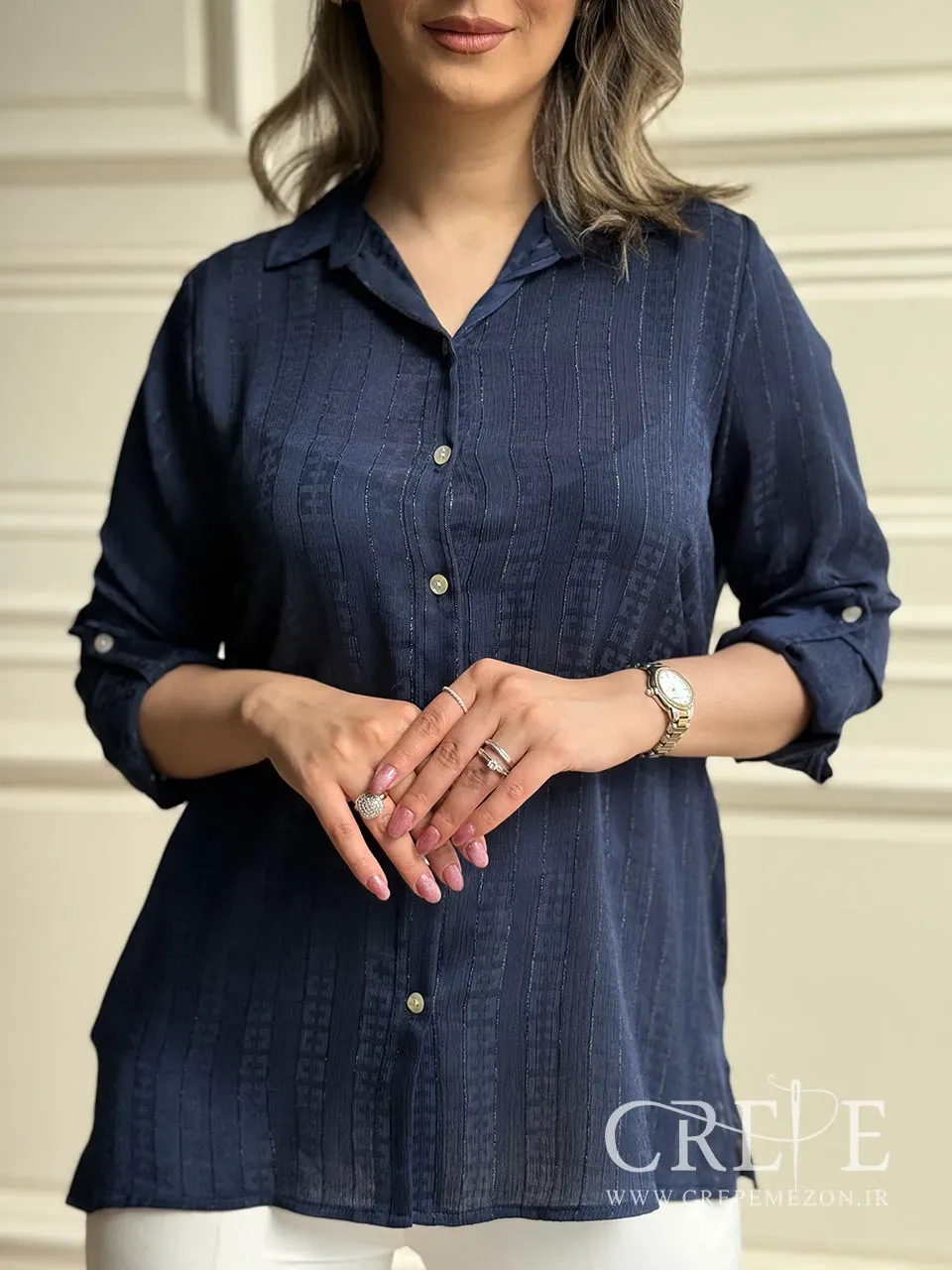 میتوانید شومیز را با دکمههای کامل یا کمی بازتر استایل دهید، بسته به میزان رسمیت و راحتی مورد نظر.