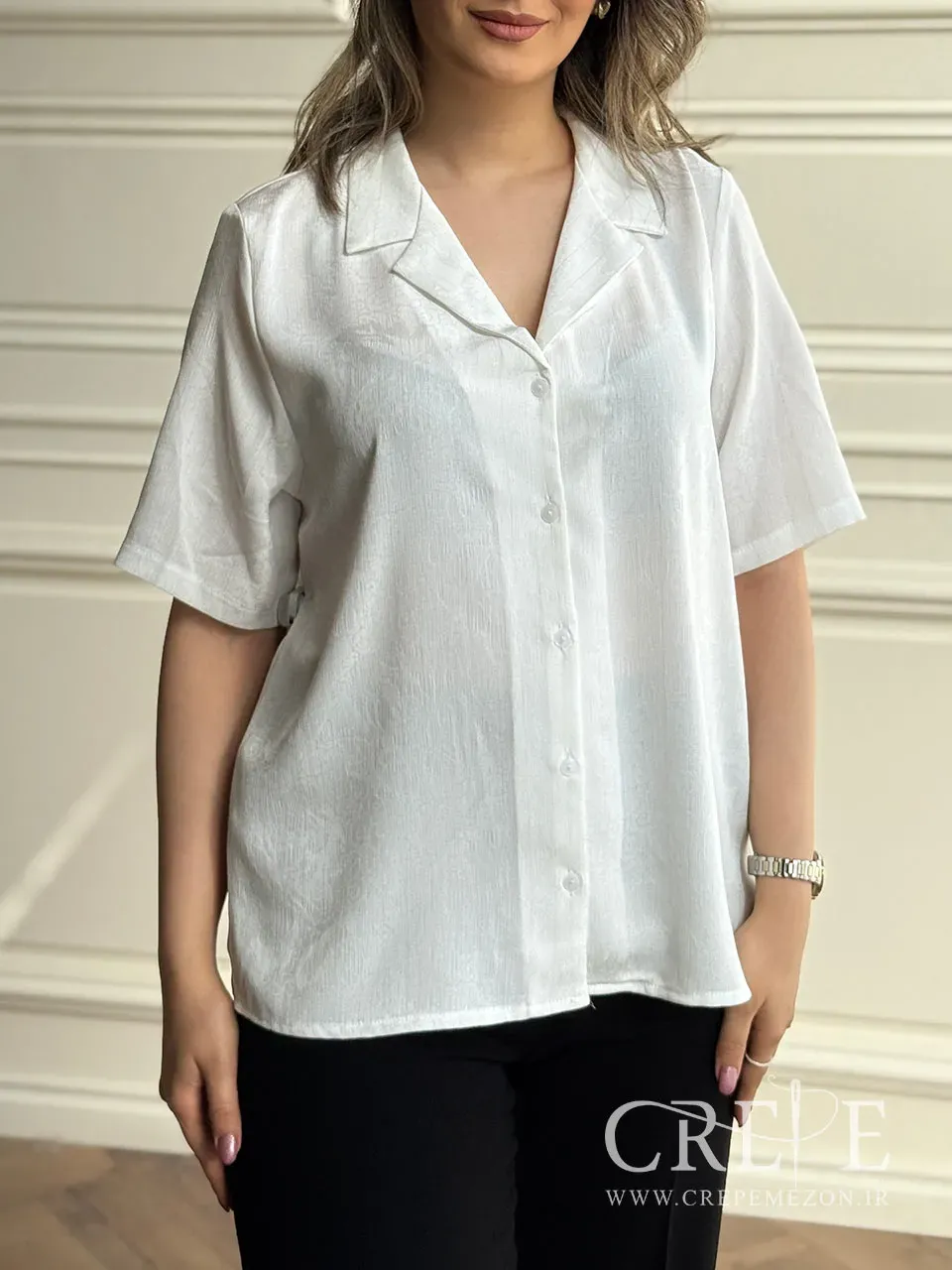 شومیز کریشه لمه آستین کوتاه طرحدار