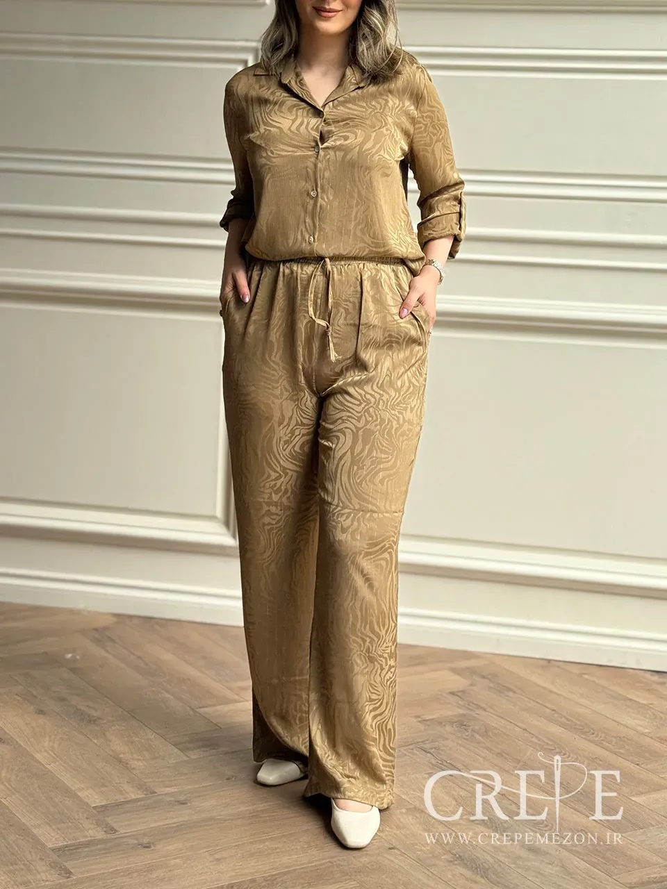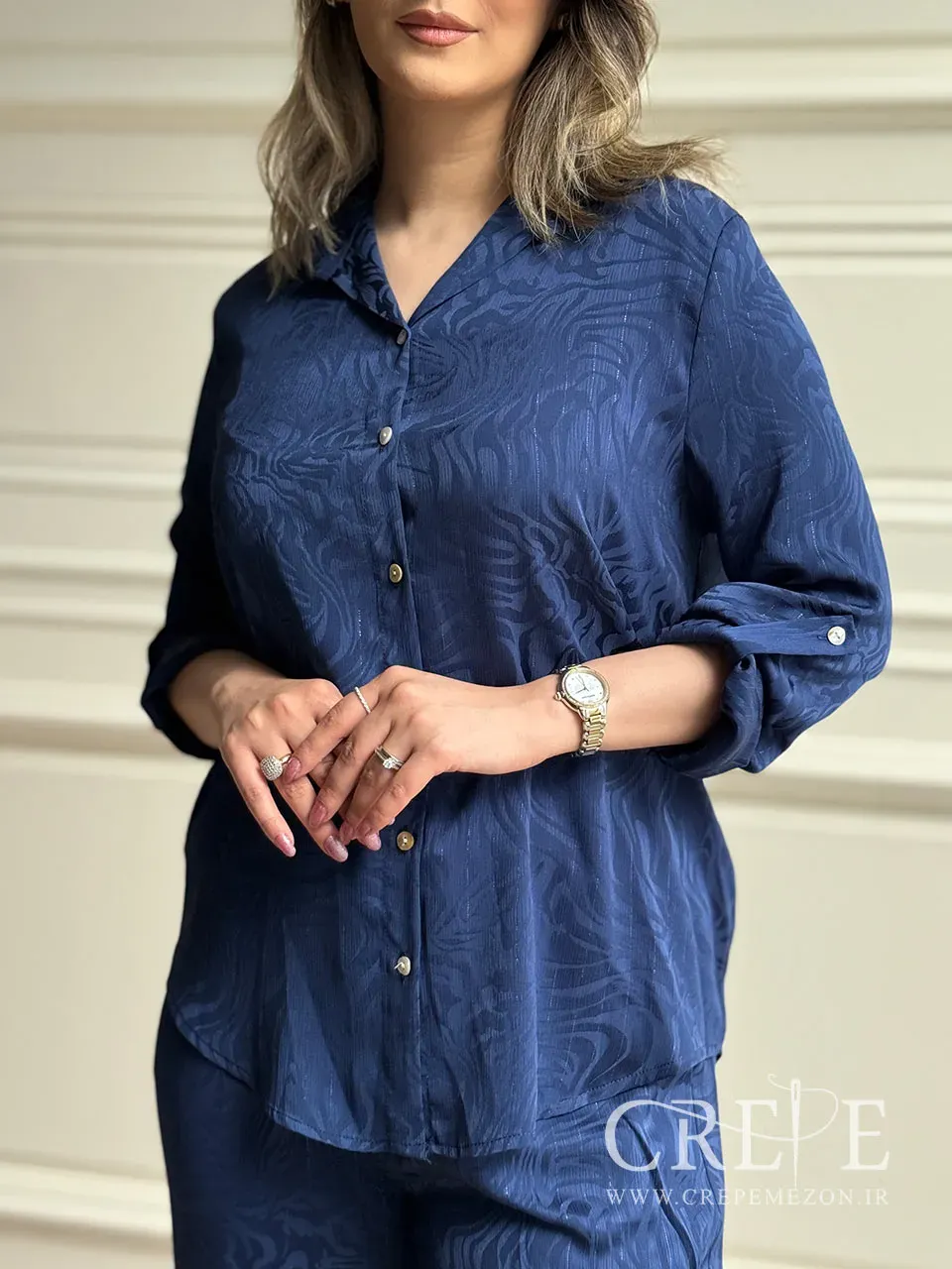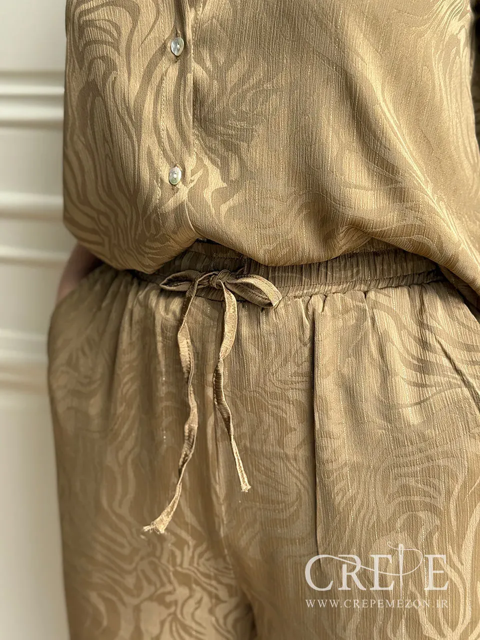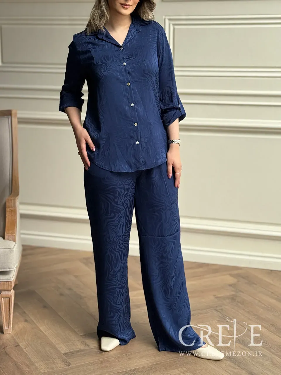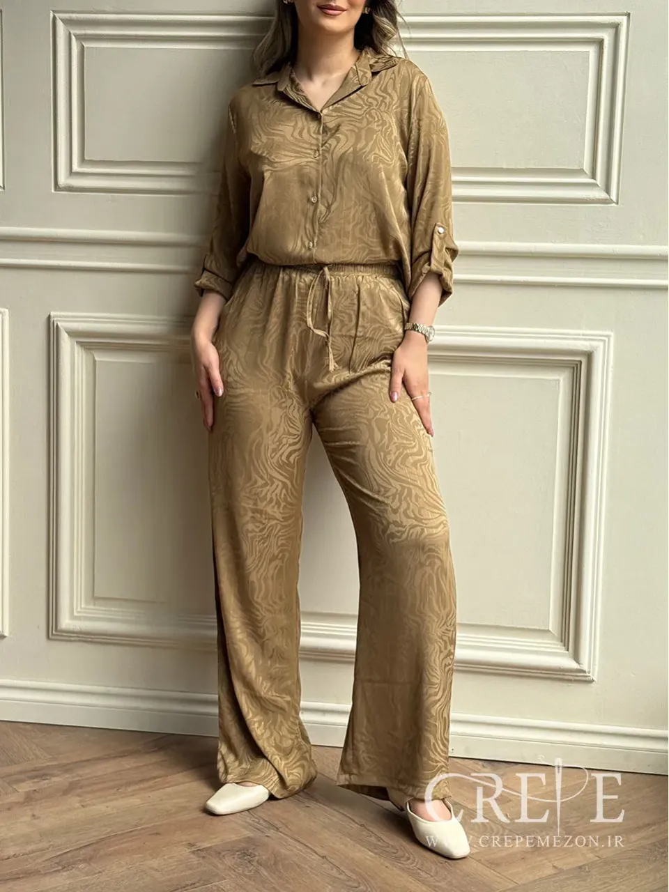 شومیز شلوار طرح زبرا یک ست مجلسی زنانه که از جنس کریشه لمه طرحدار بوده و در سایزبندی کامل 44-38 و رنگبندی سرمه ای، نسکافه ای تیره و کرم موجود شده است.