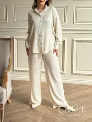 این ست مجلسی در سه رنگ کاربردی و متنوع سرمه ای، نسکافه ای تیره و کرم موجود است که هر کدام در استایل های مختلف و مناسبت های متفاوت قابلیت استفاده را دارند. شلوار از بالا گشاد است که راحتی و آزادی حرکت را تضمین می کند و ظاهری مدرن و شیک دارد. دور کمر دارای کش است که به راحتی در اندازه های مختلف قابل تنظیم است و استفاده آسان را فراهم می کند. همچنین شلوار دارای دو جیب کاربردی است که قابلیت قرار دادن وسایل کوچک را دارد، و بند دور کمر برای تنظیم دقیقتر سایز. در اندازههای 38 تا 44 موجود شده است که پاسخگوی نیازهای مختلف است.