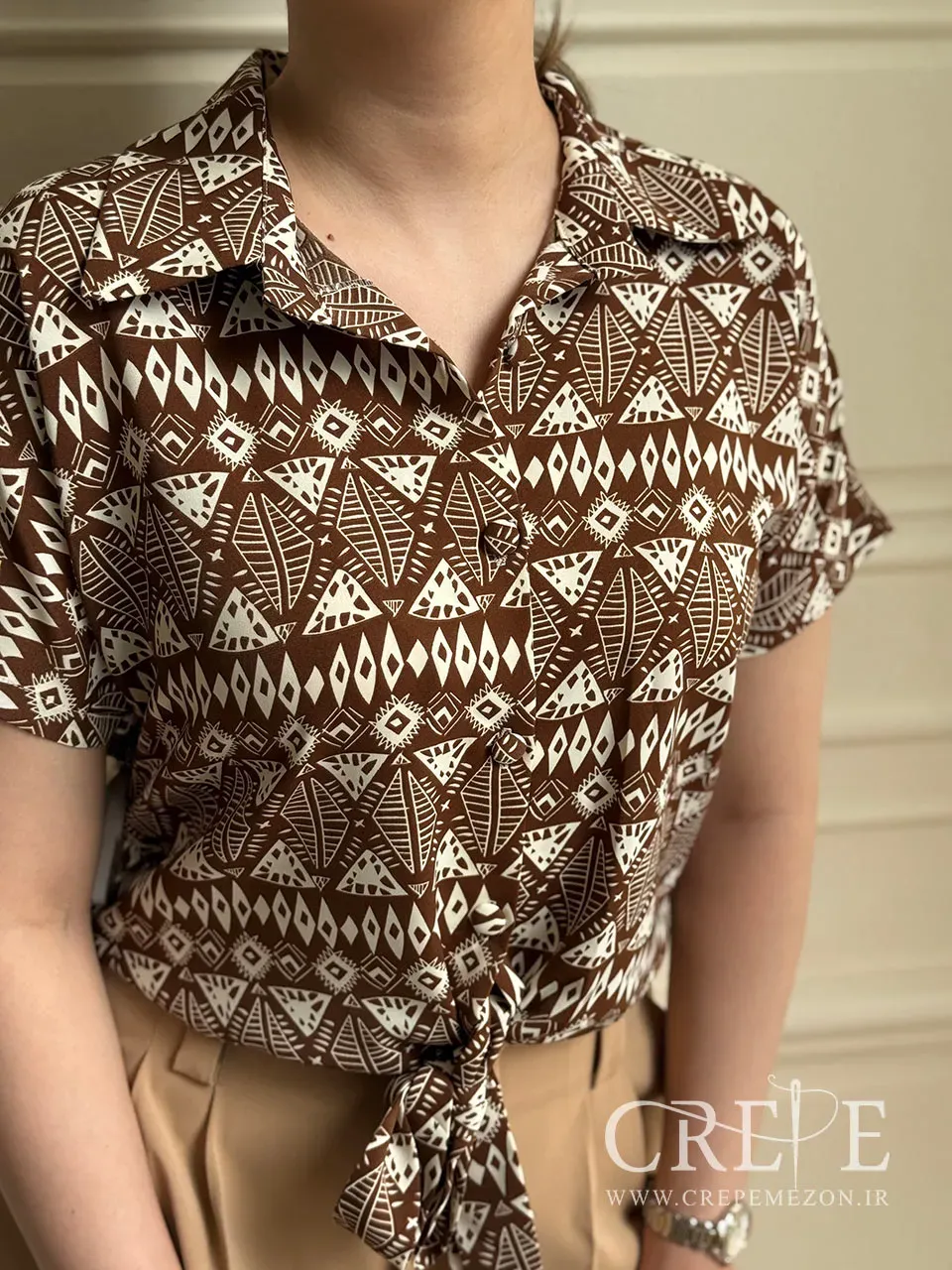 شومیز آستین کوتاه جلو گره ای