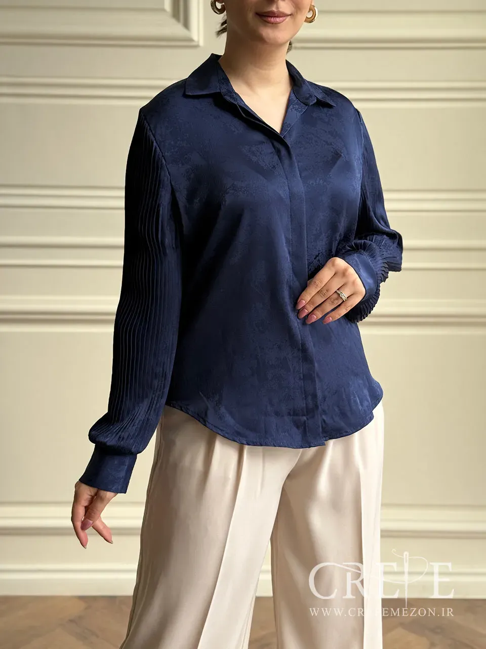 شومیز طرحدار آستین پلیسه یک شومیز مجلسی زیبا که با پارچه طرحدار و آستین پلیسه به یک کار خاص و سکه دار تبدیل شده است. این شومیز زیبا در سایزبندی 44-38 موجود است.