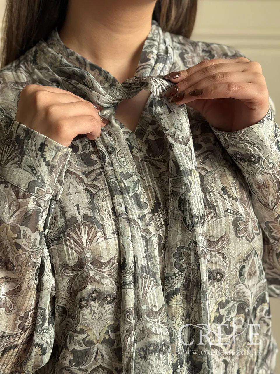 شومیز حریر شاین گل یک شومیز مجلسی شیک و خوش نقش و نگار که به راحتی استایل را شیک و ترند می سازد. این شومیز جذاب در سایزبندی 48-42 و رنگ سبز موجود است.