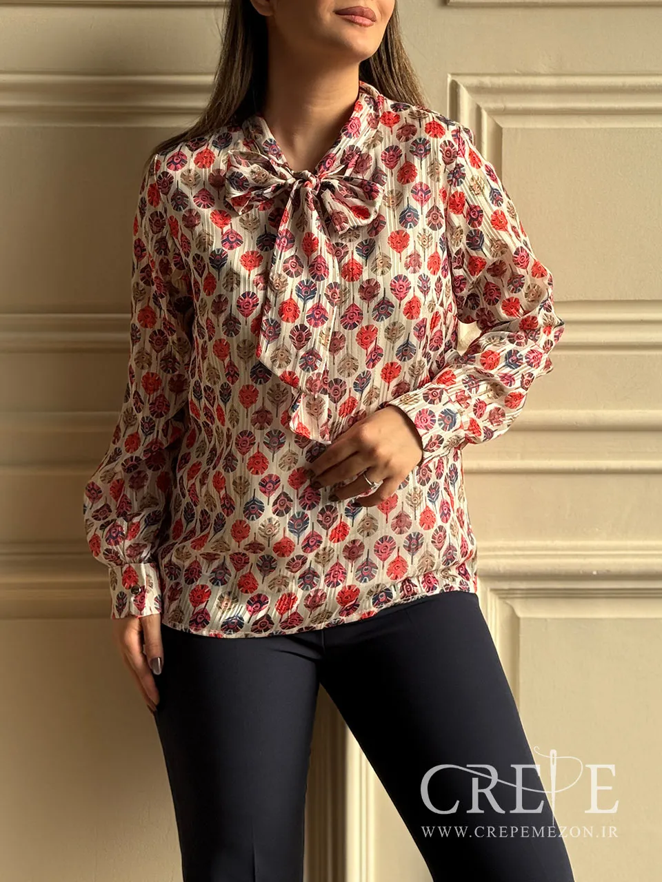 شومیز حریر شاین کرواتی یک شومیز مجلسی زیبا که در سایزبندی 48-42 و رنگ کرم گلبهی موجود شده است. طرح دل انگیز آن باعث میشود به زیبایی با انواع شلوارها ست شود.