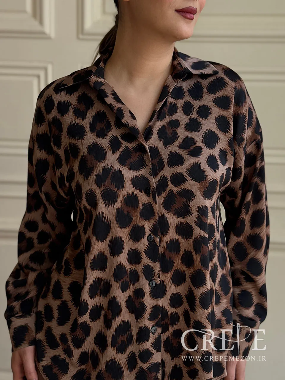 شومیز ساتن سیلک پلنگی یک شومیز مجلسی شیک که از جنس ساتن سیلک بوده و در سایزبندی کاربردی و رنگبندی مشکی نسکافه ای موجود است. این شومیز زیبا همیشه ترند است.