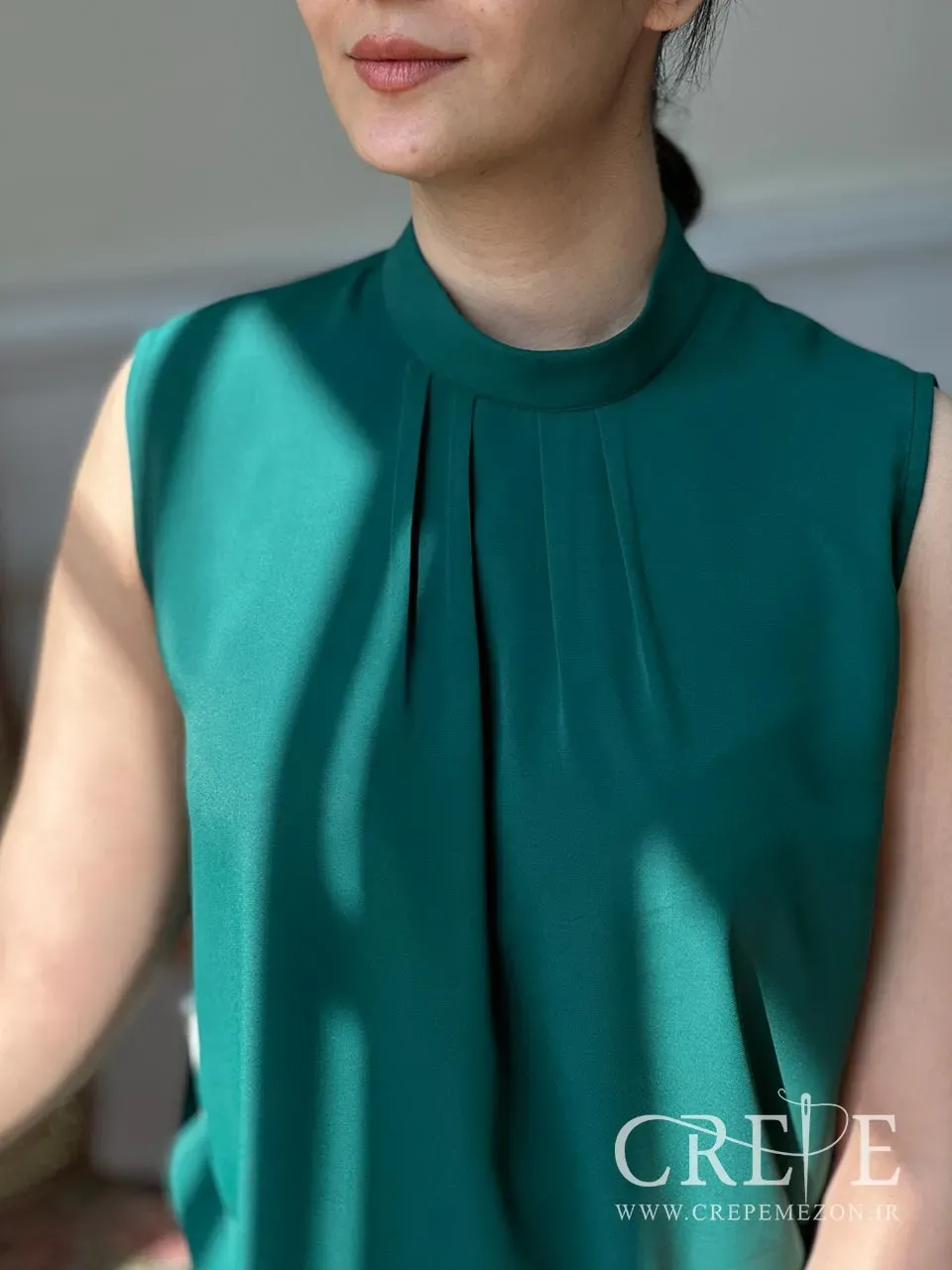 تاپ الیزه حلقه آستین به دلیل ریزش و لطافت فوق العاده ای که دارد مناسب مهمانی و مراسم های رسمی و غیر رسمی است. خرید این محصول بصورت آنلاین و حضوری ممکن است. روی سینه چند پیله دارد و یقه آن ایستاده سه سانت است.