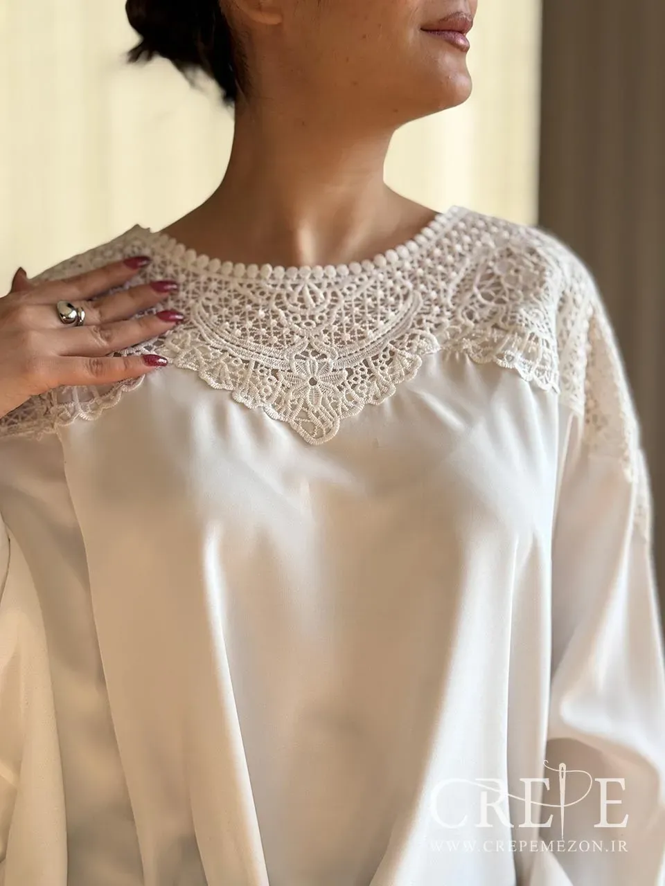 شومیز گیپور جلو گره یک شومیز مجلسی زیبا که از جنس کرپ حریر بوده و در رنگبندی متنوع و کاربردی موجود شده است. این شومیز زیبا خرید اقساطی از اسنپ پی نیز دارد.