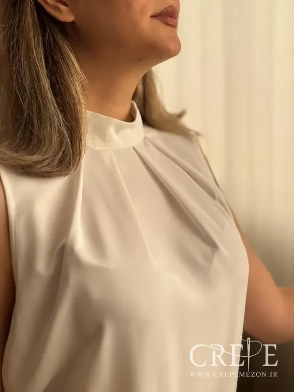 تاپ یقه سه سانت چین دار یک تاپ مجلسی از جنس کرپ الیزه است که کاربرد زیادی داشته و زیر کت یا به تنهایی با دامن یا شلوار ست می شود. همچنین هرگز قدیمی نمی شود.