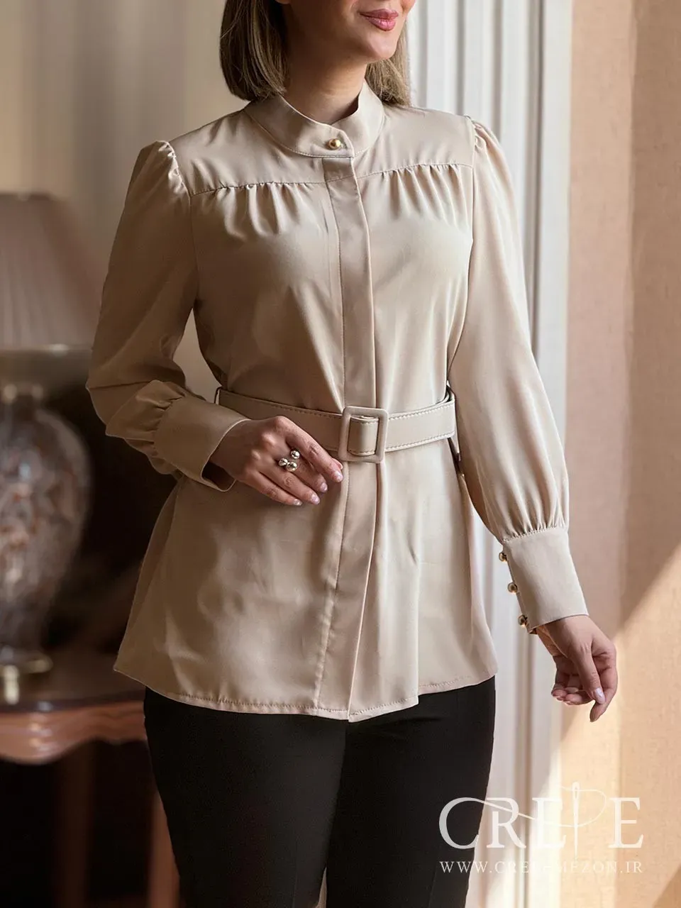 تونیک کمردار کرپ مصری یک شومیز بلند که قابلیت استفاده در تمامی مراسم ها را داشته و به دلیل پوشیده بودن برای عزیزانی که دغدغه ی حجاب دارند بسیار مناسب است.