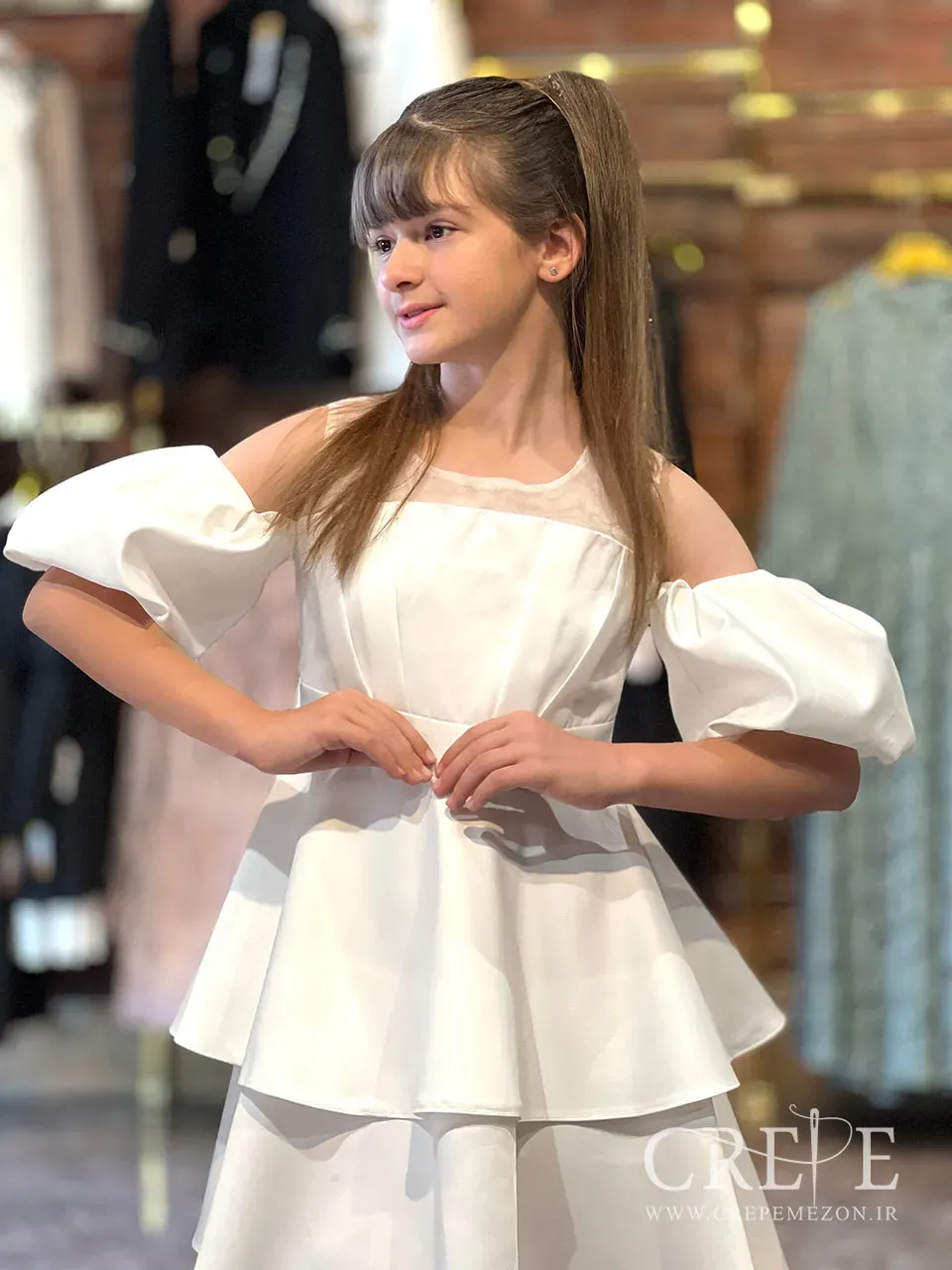 این پیراهنمون به خاطر مدل آستینش یک مد ل خاصتری هستش و برای دخترای گلمون که بازوهای پر تری دارن کارتنپوش زیباتری داره .