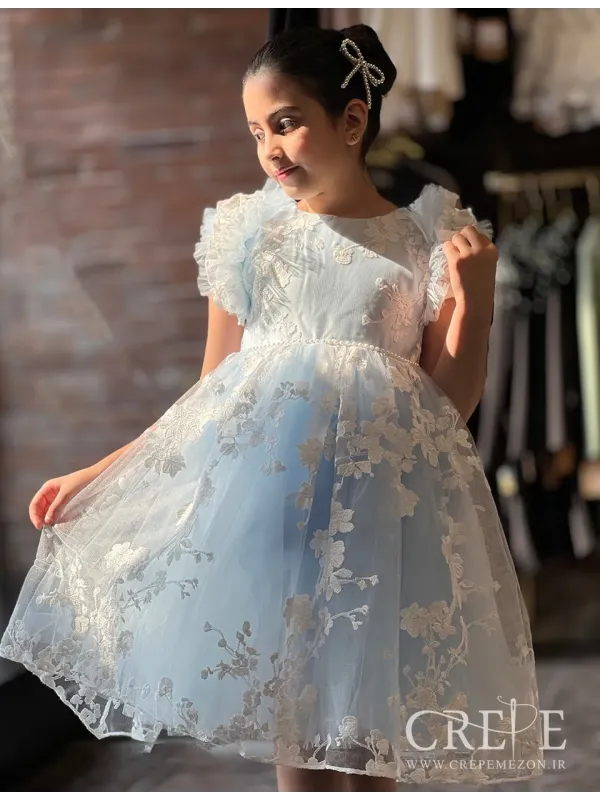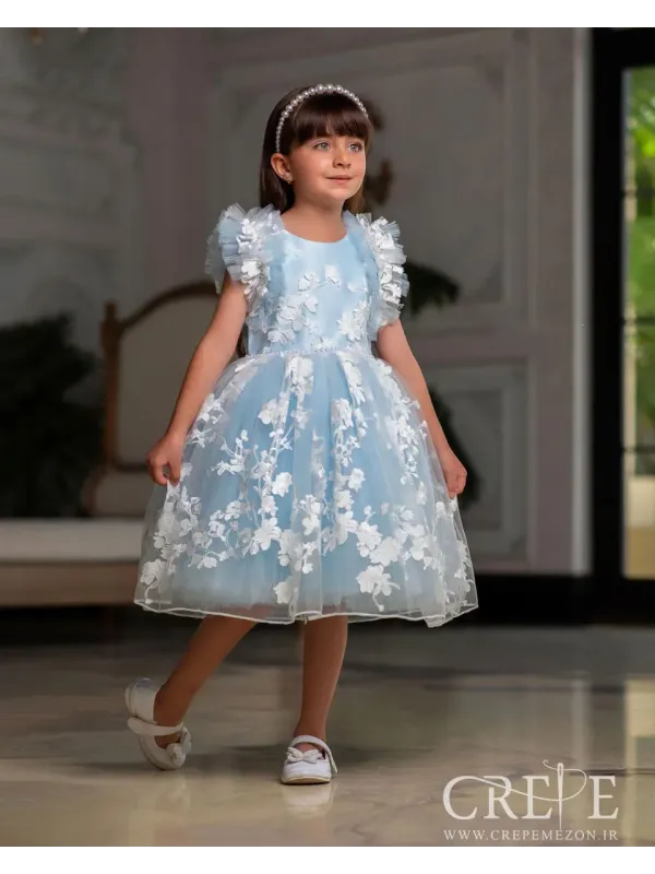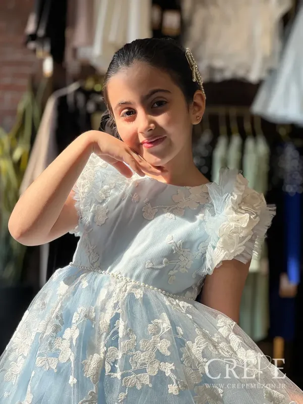 پیراهن نیلا یک ترکیبی از تورساده - تور گلدار وساتن دوخته شده و یک مدل زیبا مجلسی و پرنسسی برای دخترا خوشگل کوچولومون شده