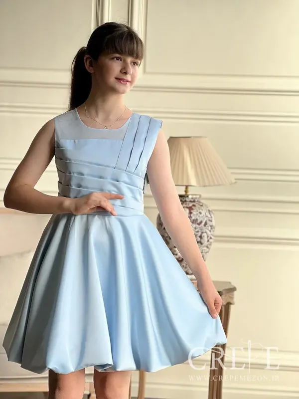 مدل این پیراهن در عین سادگی به خاطر نکات ریزی که به کار رفته مدل رو خیلی شیک وجذاب کرده پلیسه هادر قسمت کمر دامن و و قسمت سینه به صورت عمودی به کار رفته در عین سادگی یک مدل زیبا وجذاب به شما میده و پوشیدگی یقه که تو این رنج سنی از چالش های اصلی دخترای گل نوجوان مدل رو برای یک انتخاب عالی مناسبترز کرده پف که در قسمت پایین دامن داده شده به خاطر داخل داده شدن پایین دامن برای دخترای گل قد بلند ولاغر خیلی انتخاب عالی و میزان لاغری رو به کل پوشش میده و شما رو در قسمت پایین تنه پر تر نشون میده