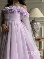 مدل پیراهن پرنسسی با یقه دکلته و گل های سه بعدی از جنس تور خوده پیراهن که دور تا دور یقه دوخته شده . قسمت جلو پیراهن تورها چین ریز با تورداده شده و یک دوخت در وسط سینه داده شده که یک طرح کاپ داری به جلو پیراهن داده شده
