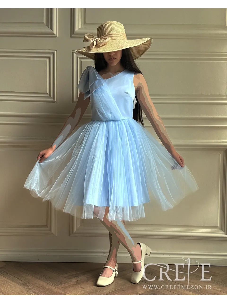 دامن این پیراهن از جنس ساتن وتور دوختهشده ومدلش نیم کلوشه قد دامن تو قسمت تور بلند تر از قد دامن ساتن و همین فاصله اندازه قد یک زیبای خاص به دامن داده