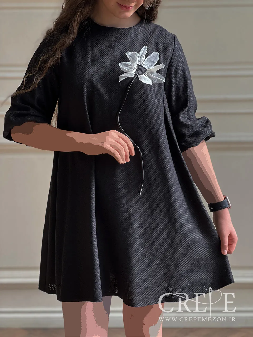 پیراهن مدل فون طراحی شده و از زیر بغل آزاده و همین مدل فون شدن پیراهن از بغل باعث شده هم مدل زیبای خاصی داشته باشه هم برای دختر بچه های که سایزش نصبت به سنش خیلی متفاوت یک انتخاب عالی براشون باشه و بزرگی سایز دور کمر رو کاملا پوشش بده بدون اینکه لباس بد فرم باشه