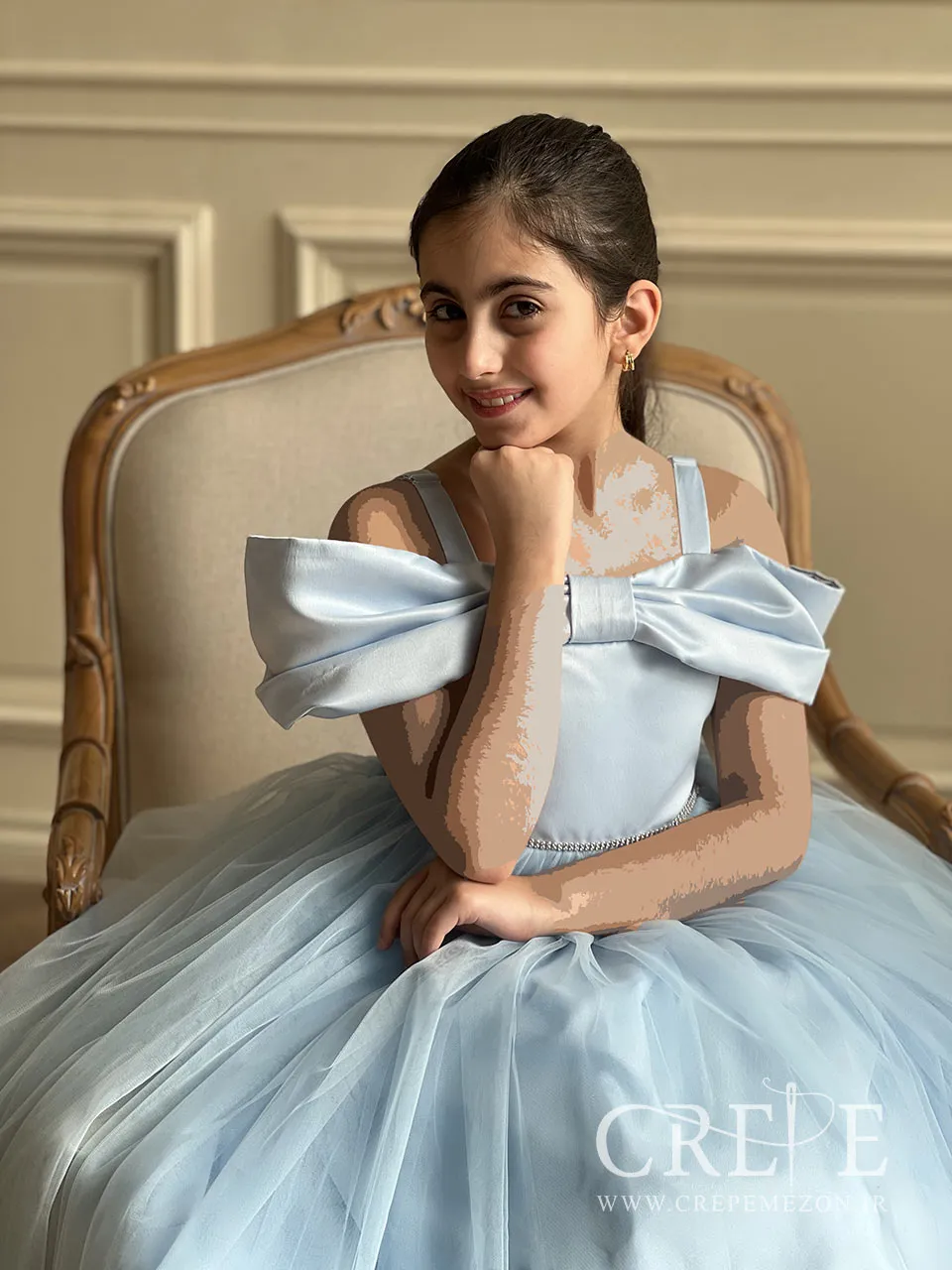 این پیراهن زیبای تور و ساتن رو میتونید با کفش پاشنه دار ست کنید تادختر گلتون مثل یک پرنسس بدرخشد