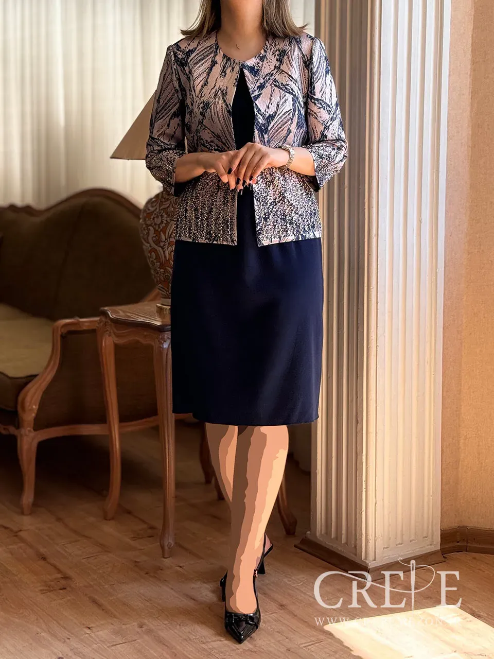 همانطور که در تصویر می بینید یقه کت گرد است که باعث ایجاد ظاهری نرم و ملایم میشود. این نوع یقه معمولاً برای اضافه کردن حس زنانه به لباس مناسب است. یقه سارافان نیز گرد است که با یقه کت هماهنگ است و به هماهنگی بیشتر این ست کمک میکند. کت دارای اپل (پهنهای که بر روی شانهها قرار میگیرد) است که به طراحی کت حجم و ساختار میدهد. سارافان دارای حلقه آستین است، که به راحتی حرکت دادن دستها کمک میکند و به ظاهری آزاد و راحت میانجامد. دو طرف جلویی کت با نگین دوزی تزئین شده است که به زیبایی و شیک بودن کت افزوده و جلوهای خاص به آن میبخشد. این ست مجلسی کت و سارافان به دلیل طراحی شیک و رنگهای زیبا، برای مراسمهای رسمی، مهمانیها مناسب است.