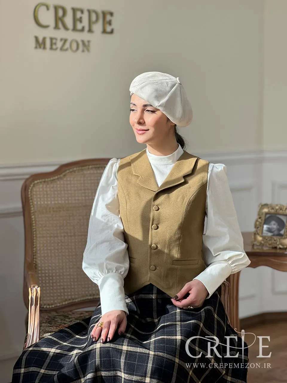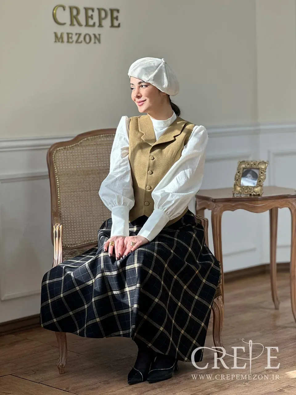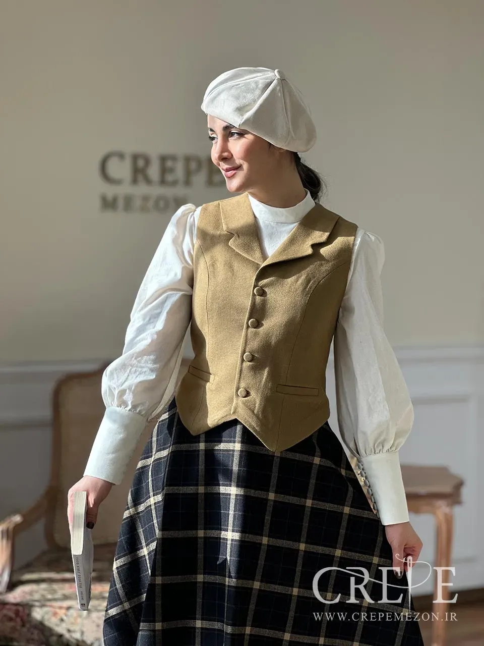 جلیقه و دامن کرم از سری طراحی های پرطرفداری است که تولید آن در انحصار مزون کرپ می باشد. این ست پاییزه دارای جلیقه و دامن از جنس کشمیر و شومیز لینن می باشد.