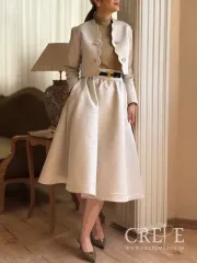 کت و دامن ژاکارد یک ست مجلسی زیبا و شیک است که با طراحی خاص و جذاب خود برای مناسبتهای رسمی و مهم مناسب میباشد. کت دارای آستینهای بلند ساده است که به زیبایی طراحی شده و به راحتی میتوانید آن را با دیگر لباسها ترکیب کنید. این کت به صورت کراپ طراحی شده که به معنای کوتاه بودن آن است و در ناحیه کمر قرار میگیرد. این طراحی باعث میشود که به طور خاص بر روی کمر تأکید شود و فرم زیبایی به اندام ببخشد. کت جلو باز است که باعث راحتی در پوشش می شود. همچنین میتوان در زمستان و تابستان استفاده کرد.
