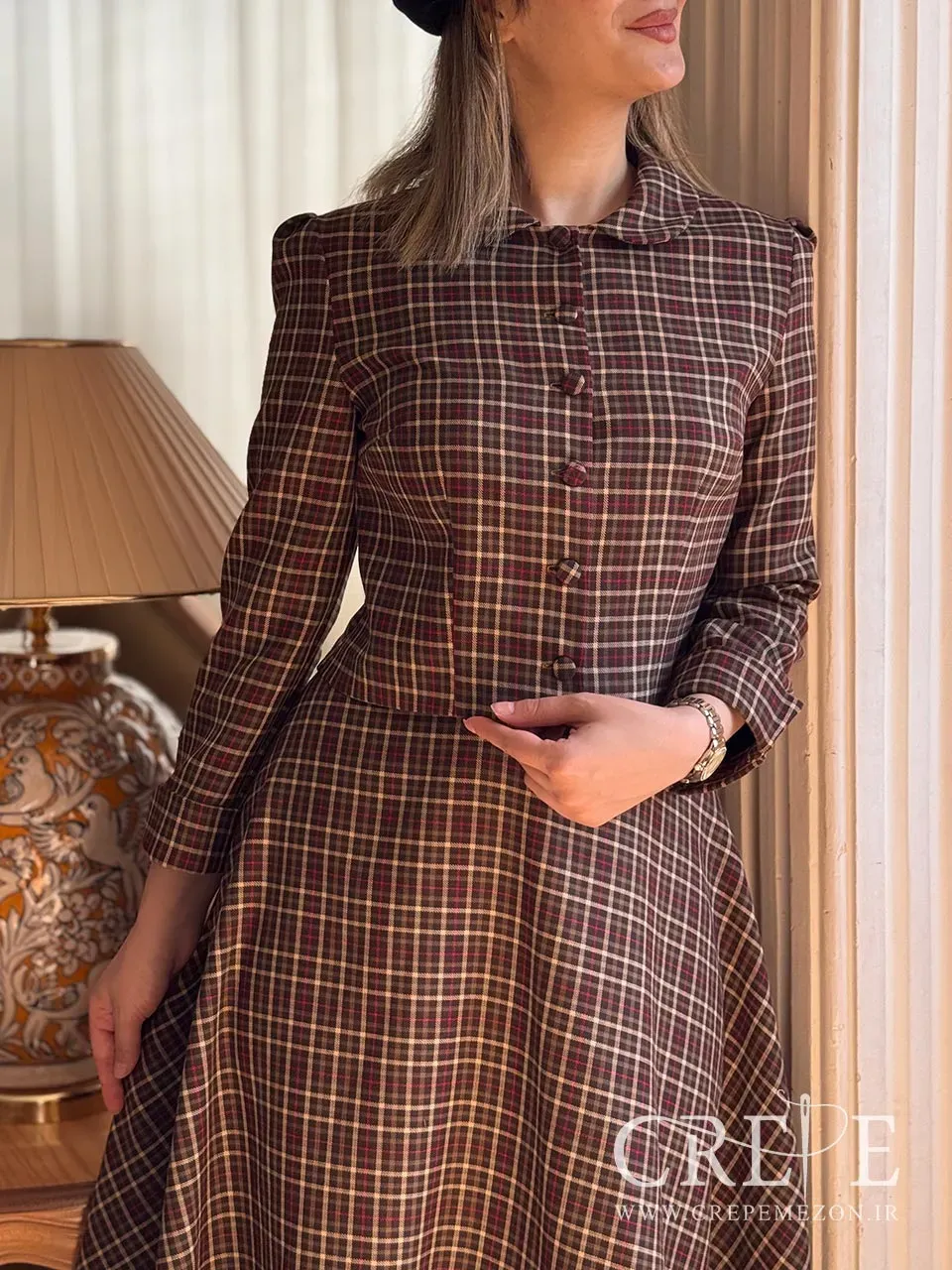 بهترین رنگ برای ست کردن با چهارخانه های ریز این کت و دامن کشمیر، رنگ کرم است که استایل شما را چندین برابر شیک تر و اصیل تر نشان خواهد داد.