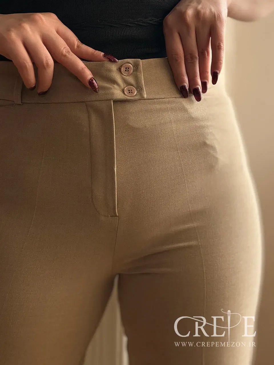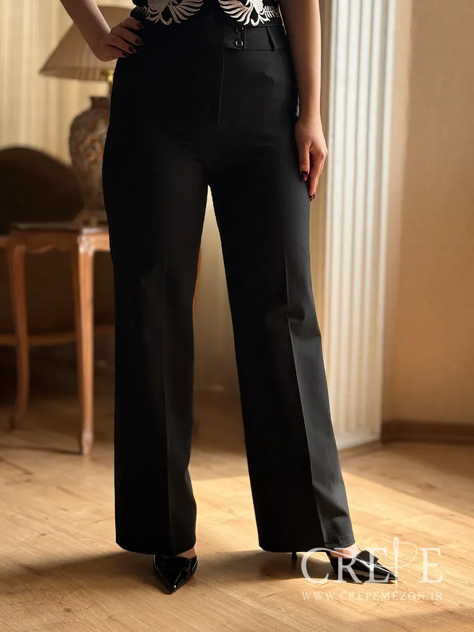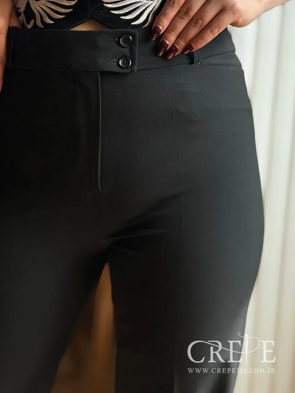 این شلوار واید دارای دو دکمه تزیینی و کاربردی در قسمت جلو است که به زیبایی طراحی افزوده و همچنین به کارایی شلوار کمک میکند. این دکمهها نهتنها جنبه تزئینی دارند، بلکه به ایجاد یک ظاهر شیک و مجلسی کمک میکنند. شلوار همچنین دارای یک زیپ در قسمت جلو است که به راحتی در باز و بسته شدن شلوار کمک میکند. این ویژگی باعث استفاده آسان از این شلوار مجلسی شده و کاربری آن را افزایش می دهد. شلوار بزیاق واید به دلیل طراحی زیبا و کلاسیک خود، گزینهای مناسب برای مراسم های پیش رو است.
