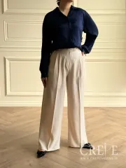 برای استایل کردن شلوار مجلسی کرپ کنزو پیله دار با مدل از بالا راسته در سایزبندی 38 تا 46 و رنگهای خاکی و استخوانی، یک انتخاب جذاب برای مراسم های رسمی و غیررسمی می باشد. یک بلوز یا تاپ ساده و درخشان با رنگهای متناسب مانند طلایی، نقرهای یا رنگهای خنثی مثل سفید یا کرم، استایل شما را خاص میکند. استفاده از گردنبند و گوشوارههای نقرهای یا طلایی ظریف، به استایل مجلسی کمک میکند. پاشنه دار های شیک در رنگهای نود یا رنگهای متضاد مانند مشکی، با استایل کلی همخوانی دارد.
