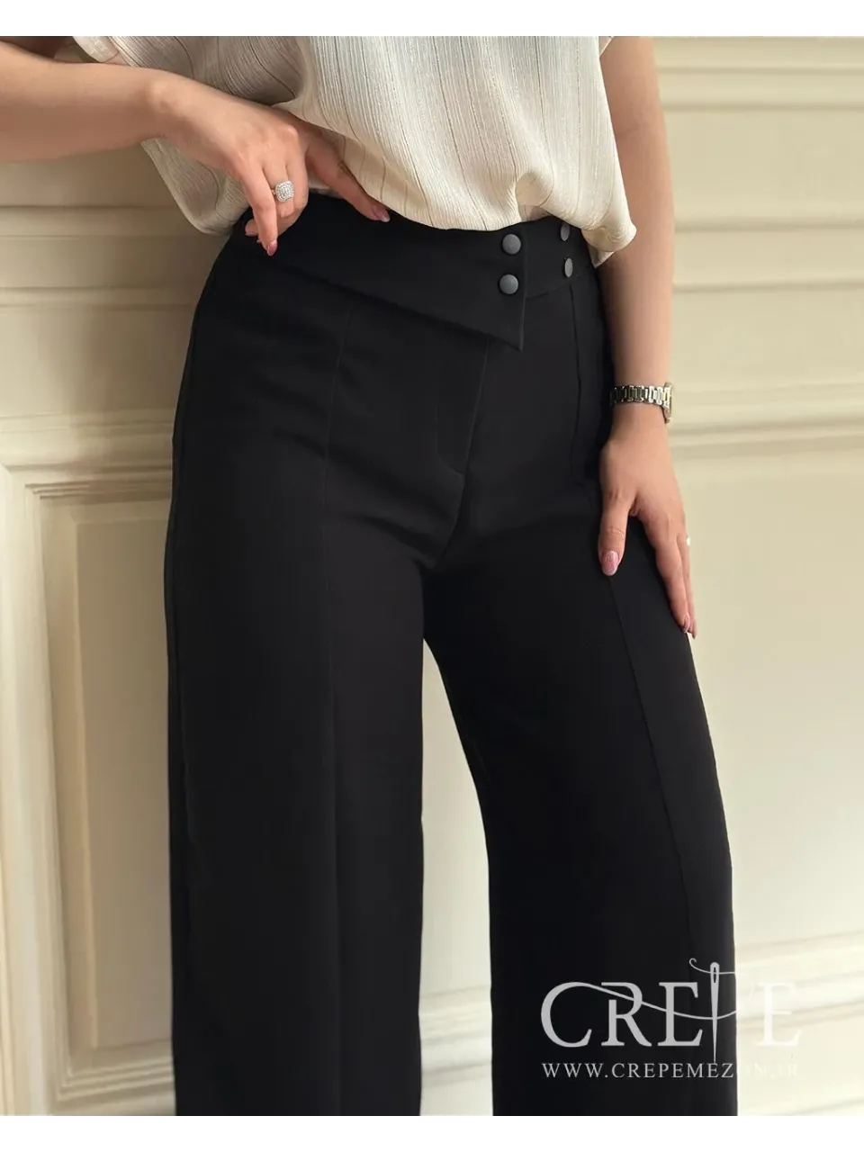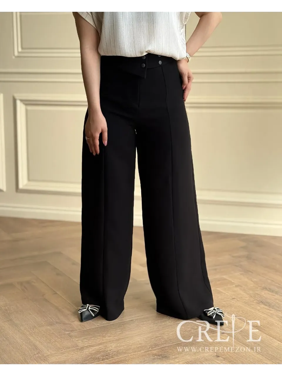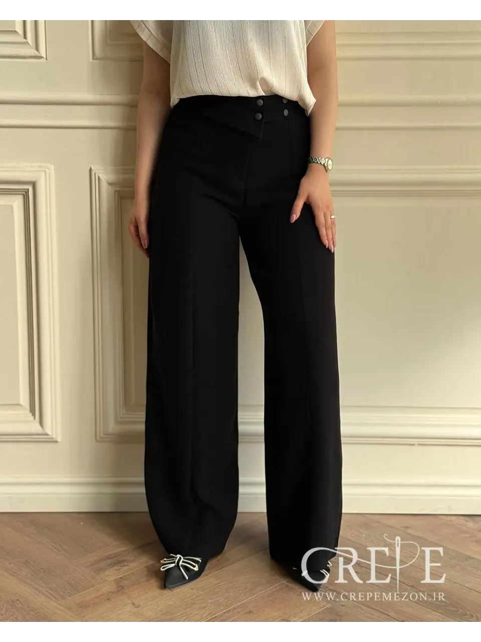 رنگ مشکی، که یکی از پرطرفدارترین رنگها در لباسهای رسمی و مجلسی است و قابلیت هماهنگی با انواع شومیز و مانتو را دارد. قسمت کمری با چهار دکمه تزیینی زیبا و منحصربهفرد تزئین شده است، که به طراحی ظاهری شلوار جلوه خاصی میبخشد و آن را از مدلهای ساده متمایز میکند. این شلوار با انواع شومیز، مانتو و بلوز قابل ست کردن است، چه برای مهمانیهای شب و چه برای مجالس رسمی روزمره. در مجموع، این شلوار کرپ اندونزی با طراحی خاص، رنگ کلاسیک و جزئیات تزیینی، انتخابی عالی برای خانمهایی است که به دنبال لباسهای مجلسی شیک و در عین حال راحت هستند.