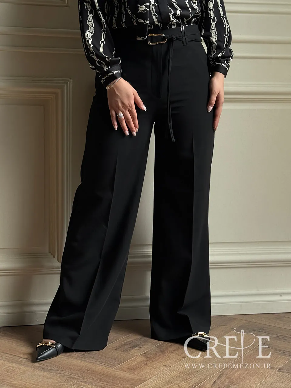 شلوار واید فلورانس سگک دار یک شلوار پارچه ای زیبا که از جنس کرپ فلورانس درجه یک بوده از ایستایی محکمی برخوردار است. این شلوار در سایزبندی 48-38 موجود است.