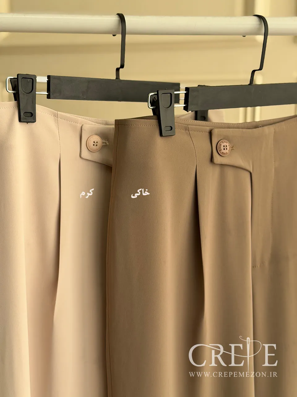 این ویژگی به شما اجازه میدهد که در حرکات خود احساس راحتی کنید و در عین حال ظاهری شیک و مدرن داشته باشید. این شلوار در رنگهای مختلفی شامل مشکی، سرمهای، کرم، خاکی و قهوهای موجود است. این تنوع رنگ به شما این امکان را میدهد که با توجه به سلیقه و نیاز خود، گزینه مناسب را انتخاب کنید. شلوار در قسمت کمر با دکمه بسته میشود که به ایستایی بهتر شلوار کمک میکند. این طراحی به شما این امکان را میدهد که به راحتی شلوار را بپوشید و از راحتی آن لذت ببرید. قسمت شکم شلوار دارای پیله است که به طراحی آن جلوهای خاص و زیبا میبخشد.